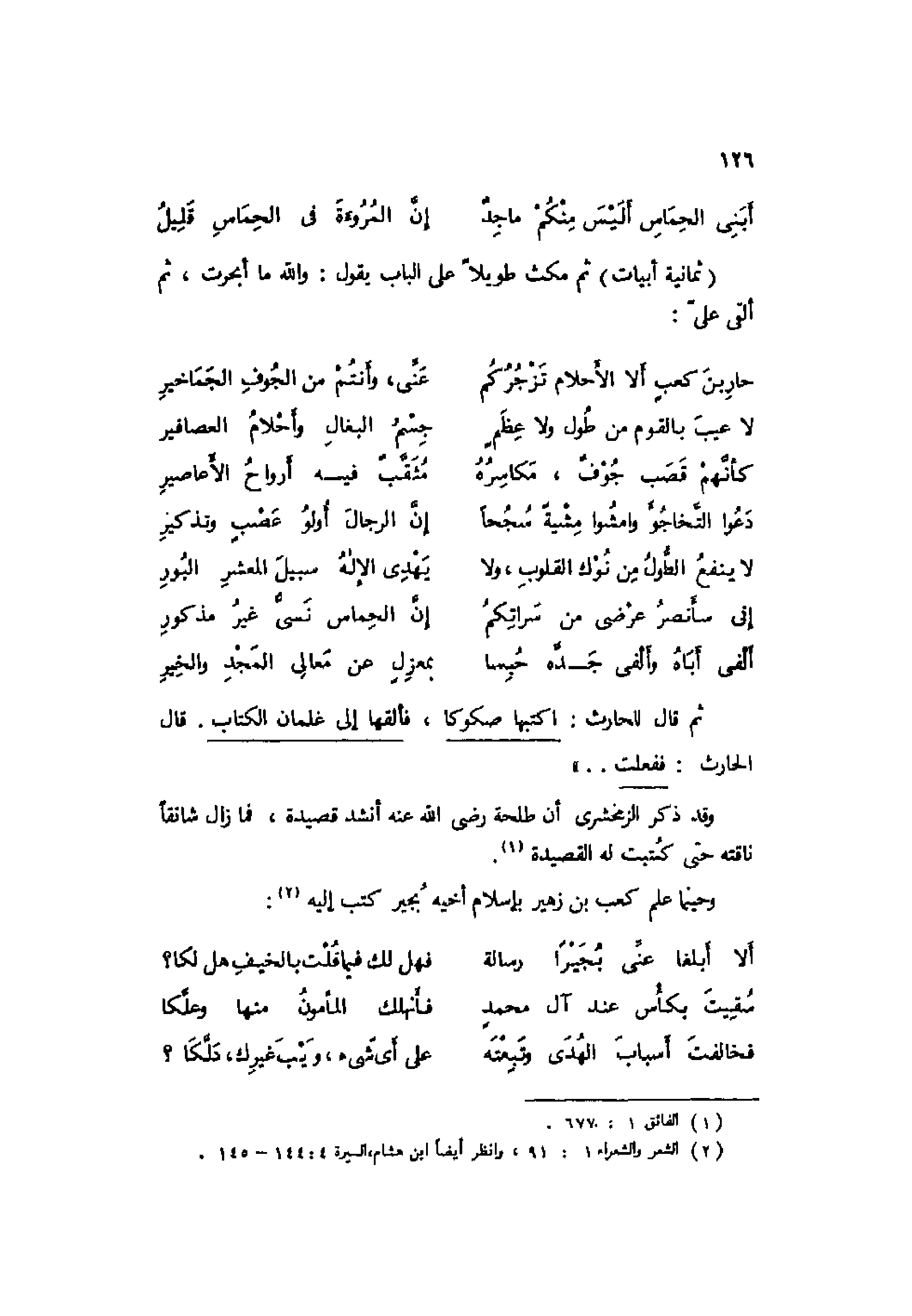 أبني الحماس أليس منكم ماجد ... إن المروءة في الحماس قليل