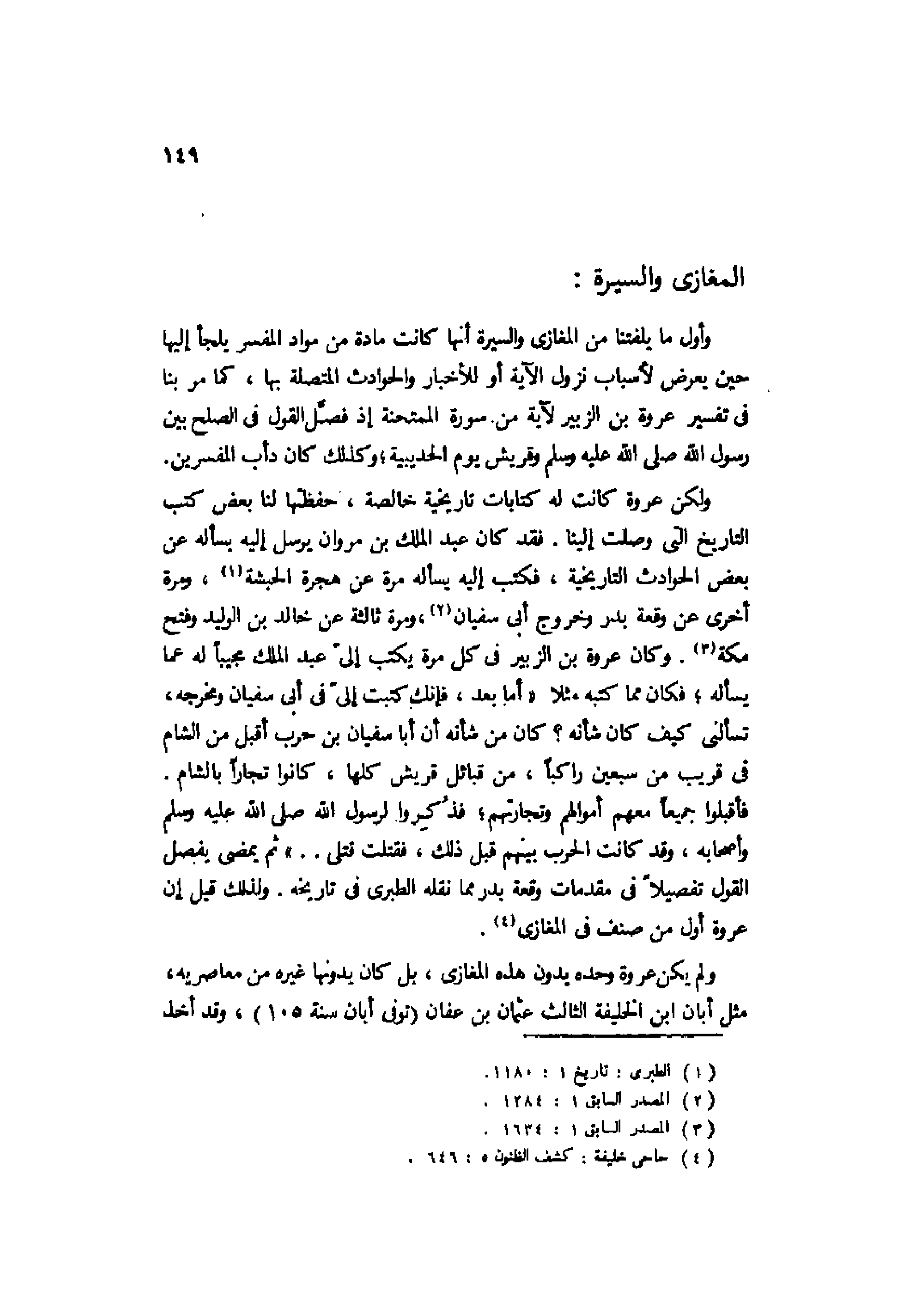 وأول ما يلفتنا من المغازي والسيرة أنها كانت مادة من مواد المفسر يلجأ إليها حين يعرض لأسباب نزول الآية أو للأخبار والحوادث المتصلة بها، كما مر بنا في تفسير عروة بن الزبير لآية من سورة الممتحنة إذ فصَّل القول في الصلح بين رسول الله صلى الله عليه وسلم وقريش يوم الحديبية؛ وكذلك كان دأب المفسرين.
