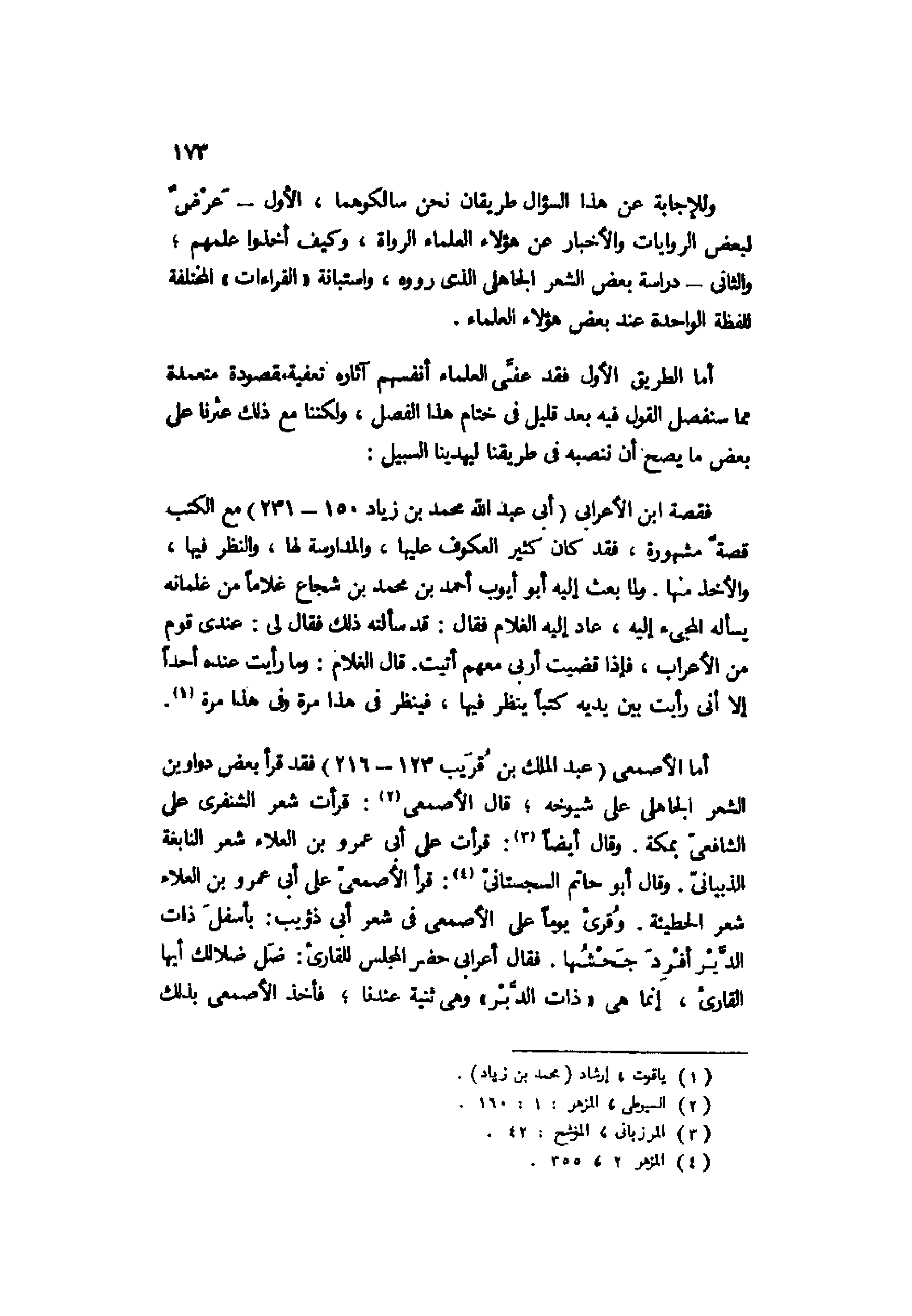 وللإجابة عن هذا السؤال طريقان نحن سالكوهما، الأول: عرض لبعض الروايات والأخبار عن هؤلاء العلماء الرواة، وكيف أخذوا علمهم؛ والثاني: دراسة بعض الشعر الجاهلي الذي رووه، واستبانة، "القراءات" المختلفة للفظة الواحدة عند بعض هؤلاء العلماء.