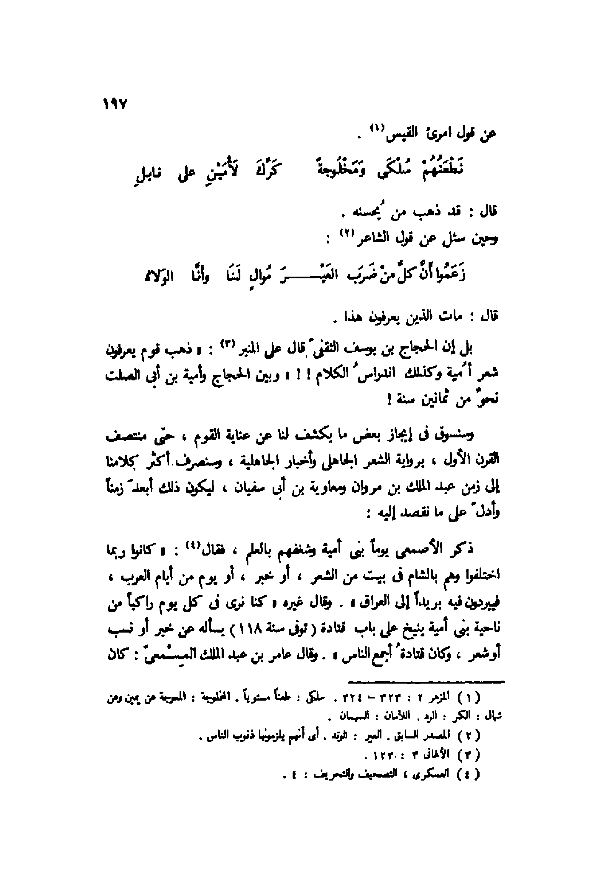 وسنسوق في إيجاز بعض ما يكشف لنا عن عناية القوم، حتى منتصف القرن الأول، برواية الشعر الجاهلي وأخبار الجاهلية، وسنصرف أكثر كلامنا إلى زمن عبد الملك بن مروان ومعاوية أبي سفيان، ليكون ذلك أبعد زمنًا وأدل على ما نقصد إليه: