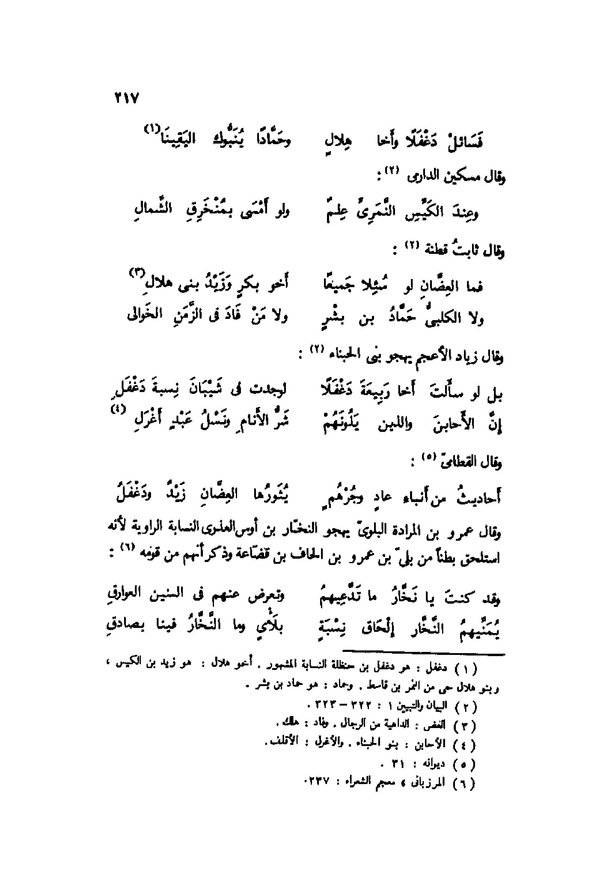 1 دغفل: هو دغفل بن حنظلة النسابة المشهور. أخو هلال: هو زيد بن الكيس، وبنو هلال حي من النمر بن قاسط. وحماد: هو حماد بن بشر.