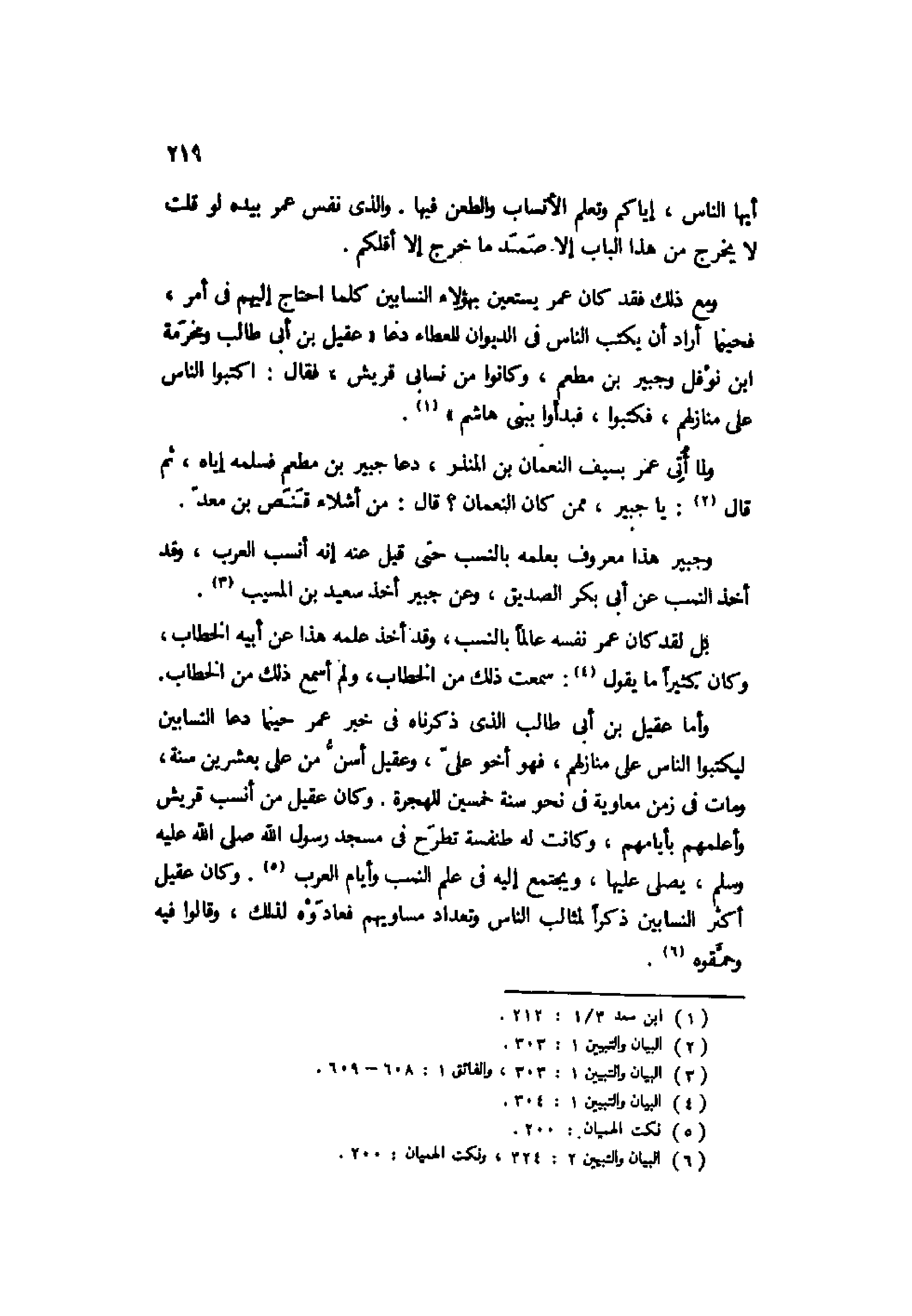 بل لقد كان عمر نفسه عالمًا بالنسب، وقد أخذ علمه هذا عن أبيه الخطاب، وكان كثيرًا ما يقول4: سمعت ذلك من الخطاب، ولم أسمع ذلك من الخطاب،