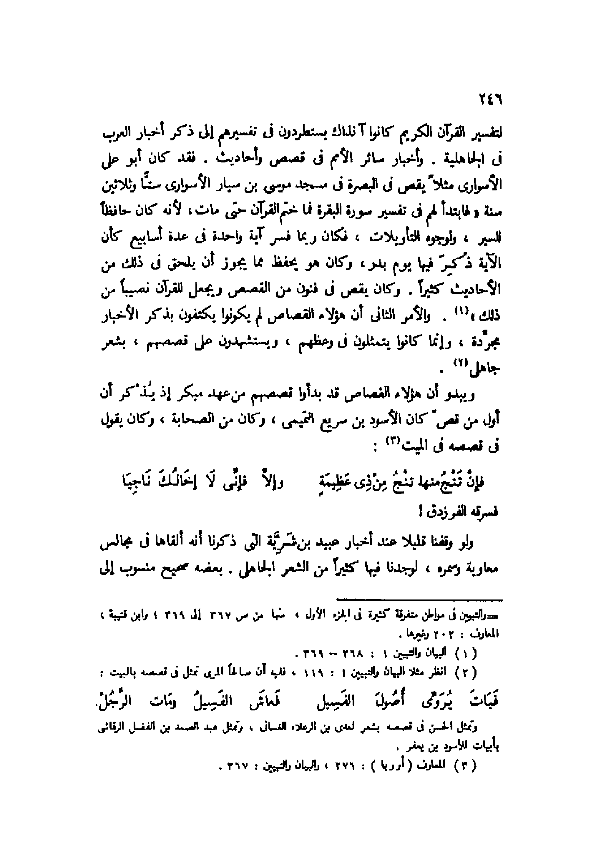 2 انظر مثلًا البيان والتبيين 1: 119، ففيه أن صالحًا المري تمثل في قصصه بالبيت: