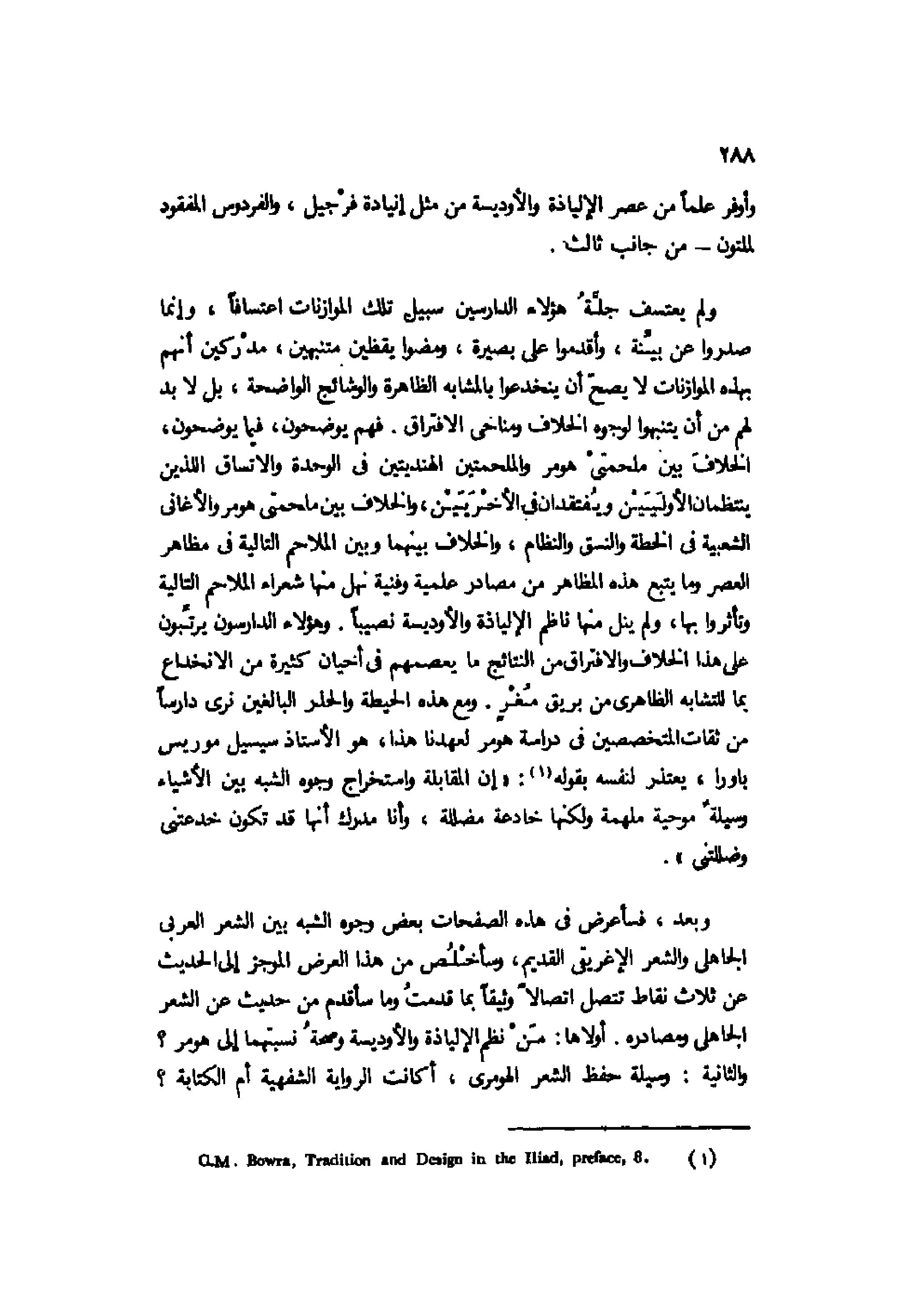 1 GM. Bowra, Tradition and design in the Iliad, preface, 8.
