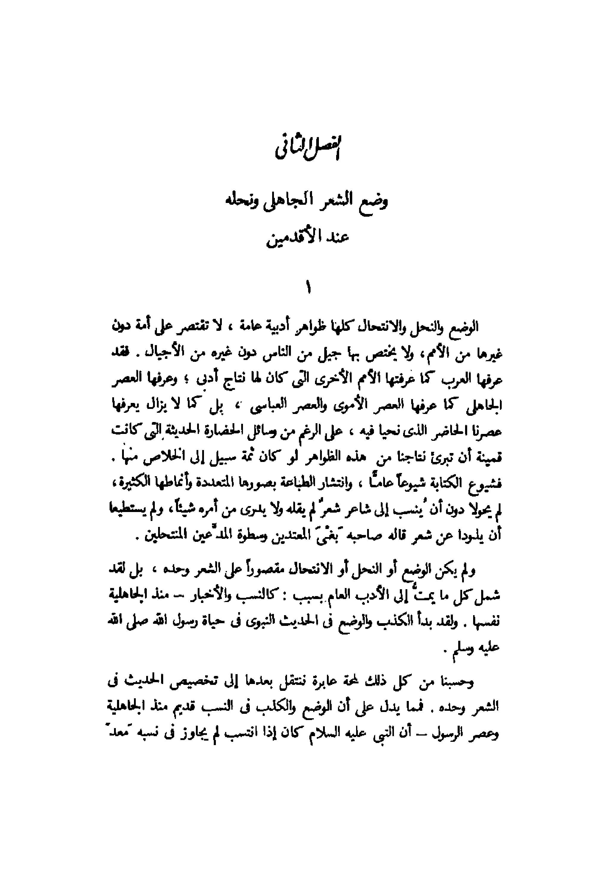 الفصل الثاني: وضع الشعر الجاهلي ونحله عند الأقدمين