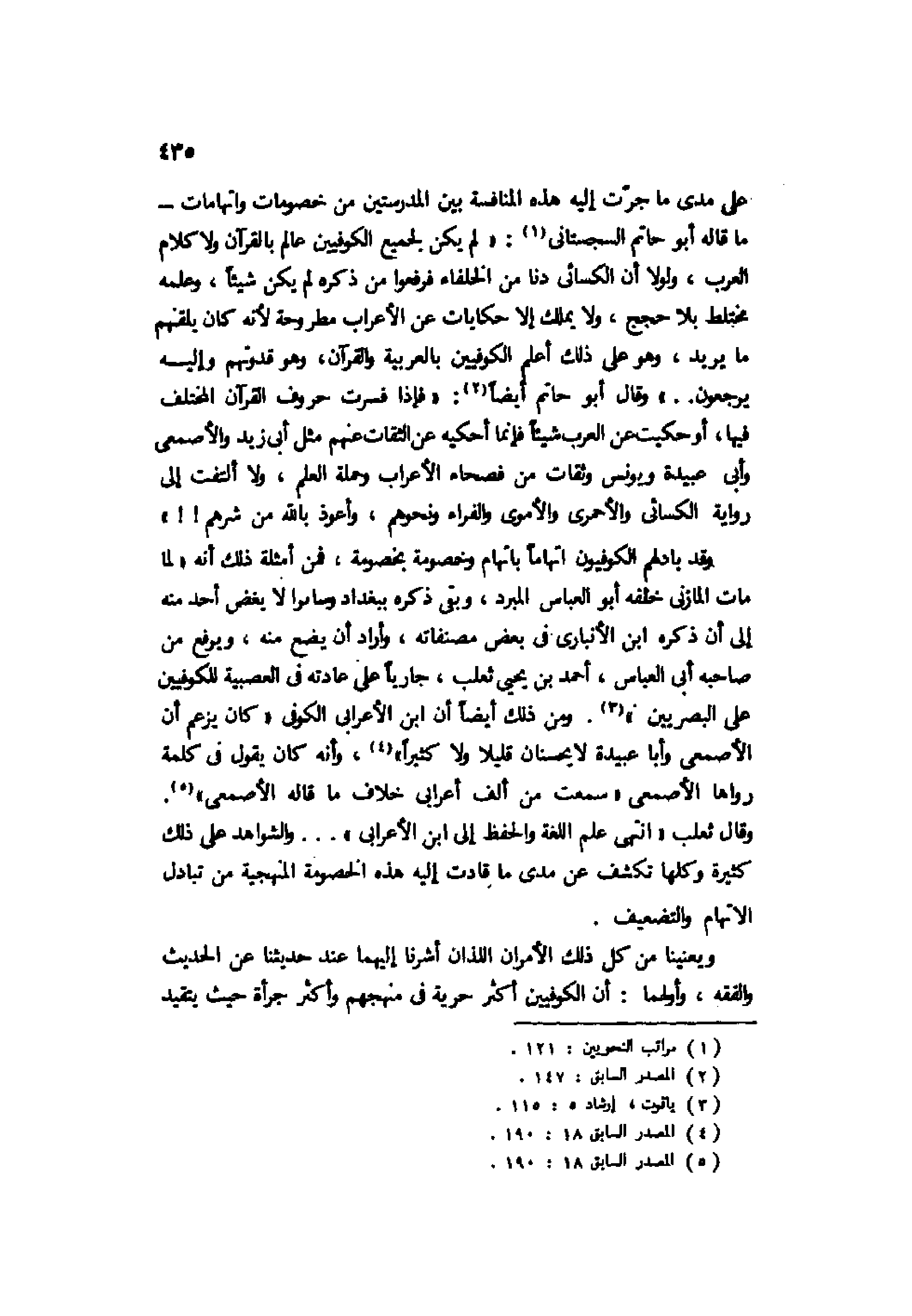 وقال ثعلب "انتهى علم اللغة والحفظ إلى ابن الأعرابي" ... والشواهد على ذلك كثيرة وكلها تكشف عن مدى ما قادت إليه هذه الخصومة المنهجية من تبادل الاتهام والتضعيف.