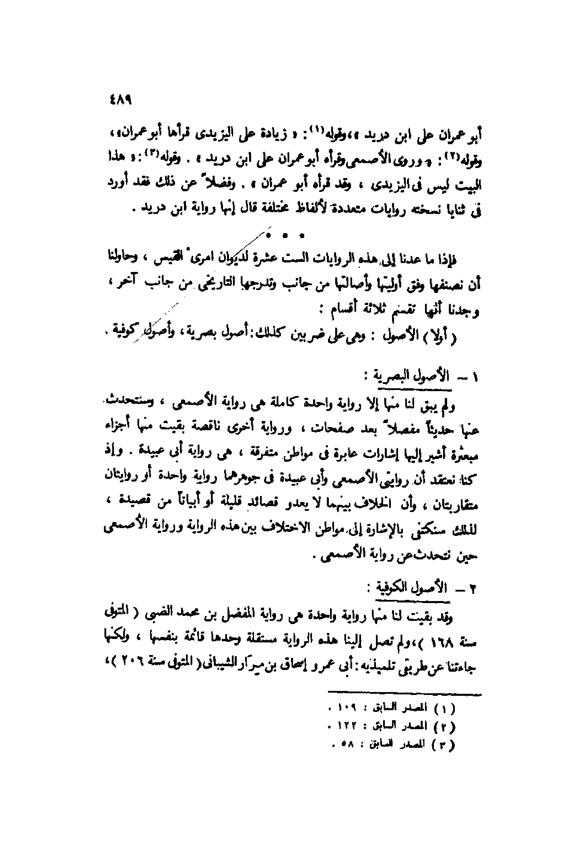 فإذا ما عدنا إلى هذه الروايات الست عشرة لديوان امرئ القيس، وحاولنا أن نصنفها وفق أوليتها وأصالتها من جانب وتدرجها التاريخي من جانب آخر، وجدنا أنها تقسم ثلاثة أقسام: