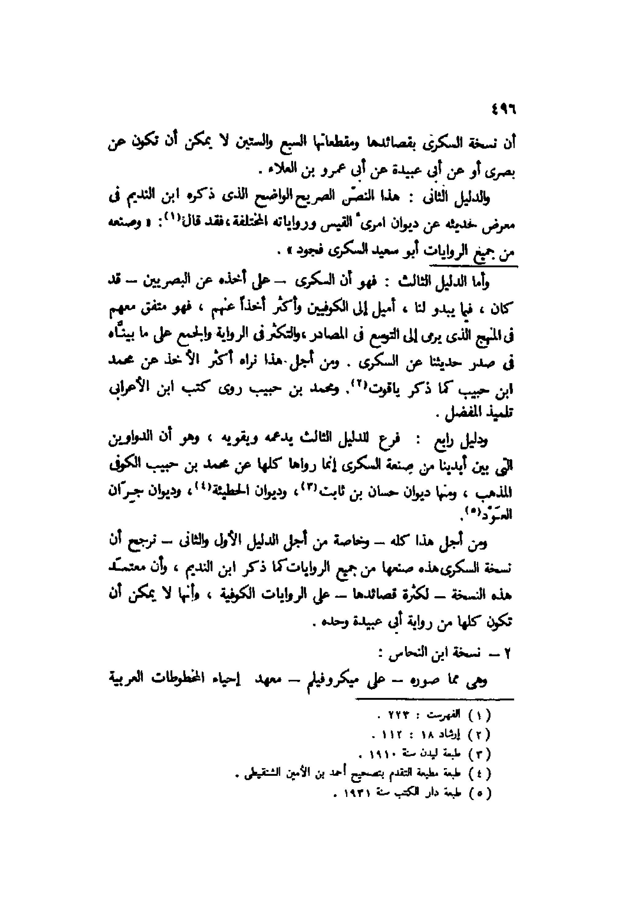 ومن أجل هذا كله -وخاصة من أجل الدليل الأول والثاني- نرجح أن نسخة السكري هذه صنعها من جميع الروايات كما ذكر ابن النديم، وأن معتمد هذه النسخة -لكثرة قصائدها- على الروايات الكوفية، وأنها لا يمكن أن تكون كلها من رواية أبي عبيدة وحده.