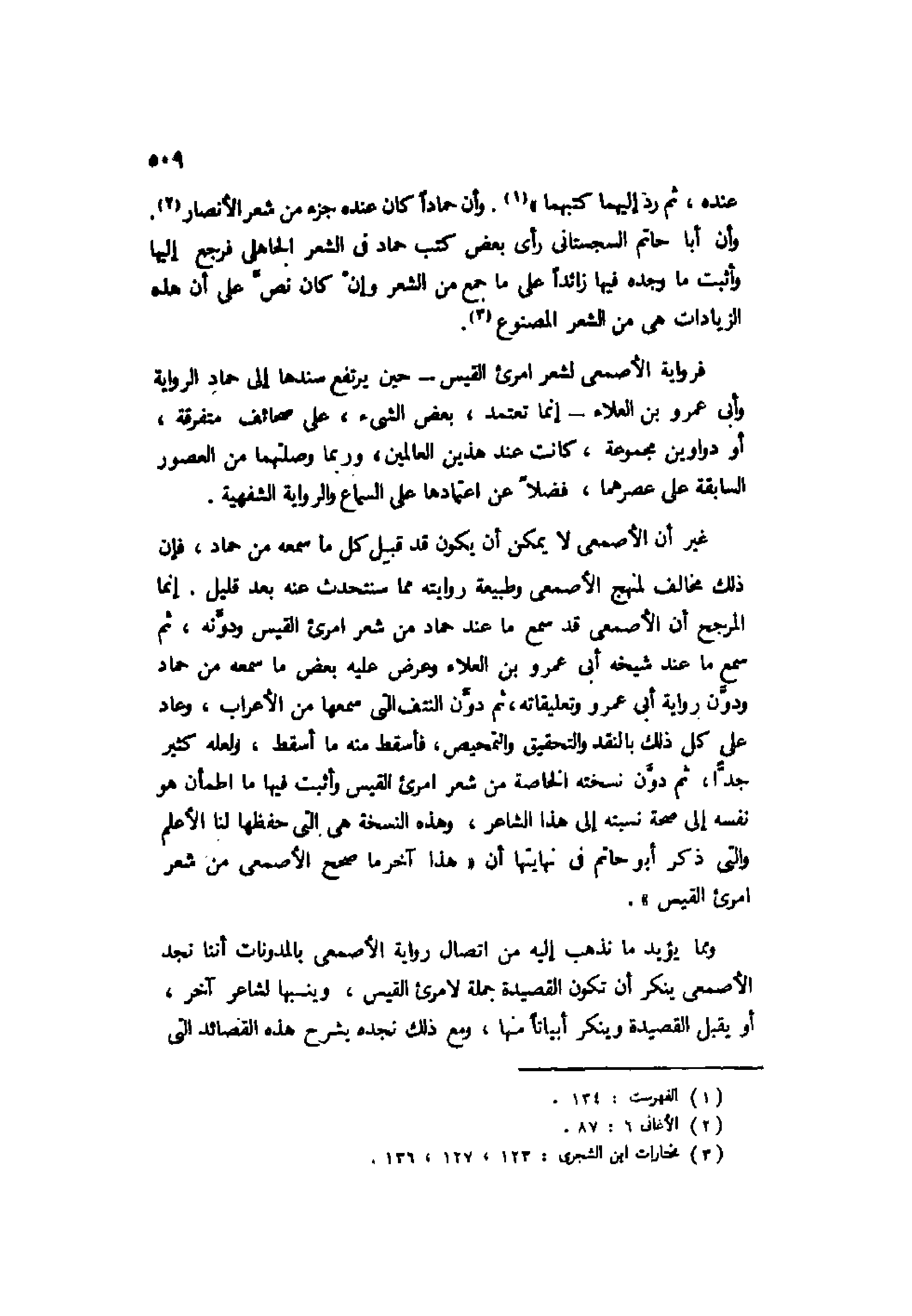 فرواية الأصمعي لشعر امرئ القيس -حين يرتفع سندها إلى حماد الرواية وأبي عمرو بن العلاء- إنما تعتمد، بعض الشيء، على صحائف متفرقة، أو دواوين مجموعة، كانت عند هذين العالمين، وربما وصلتهما من العصور السابقة على عصرهما، فضلًا عن اعتمادها على السماع والرواية الشفهية.