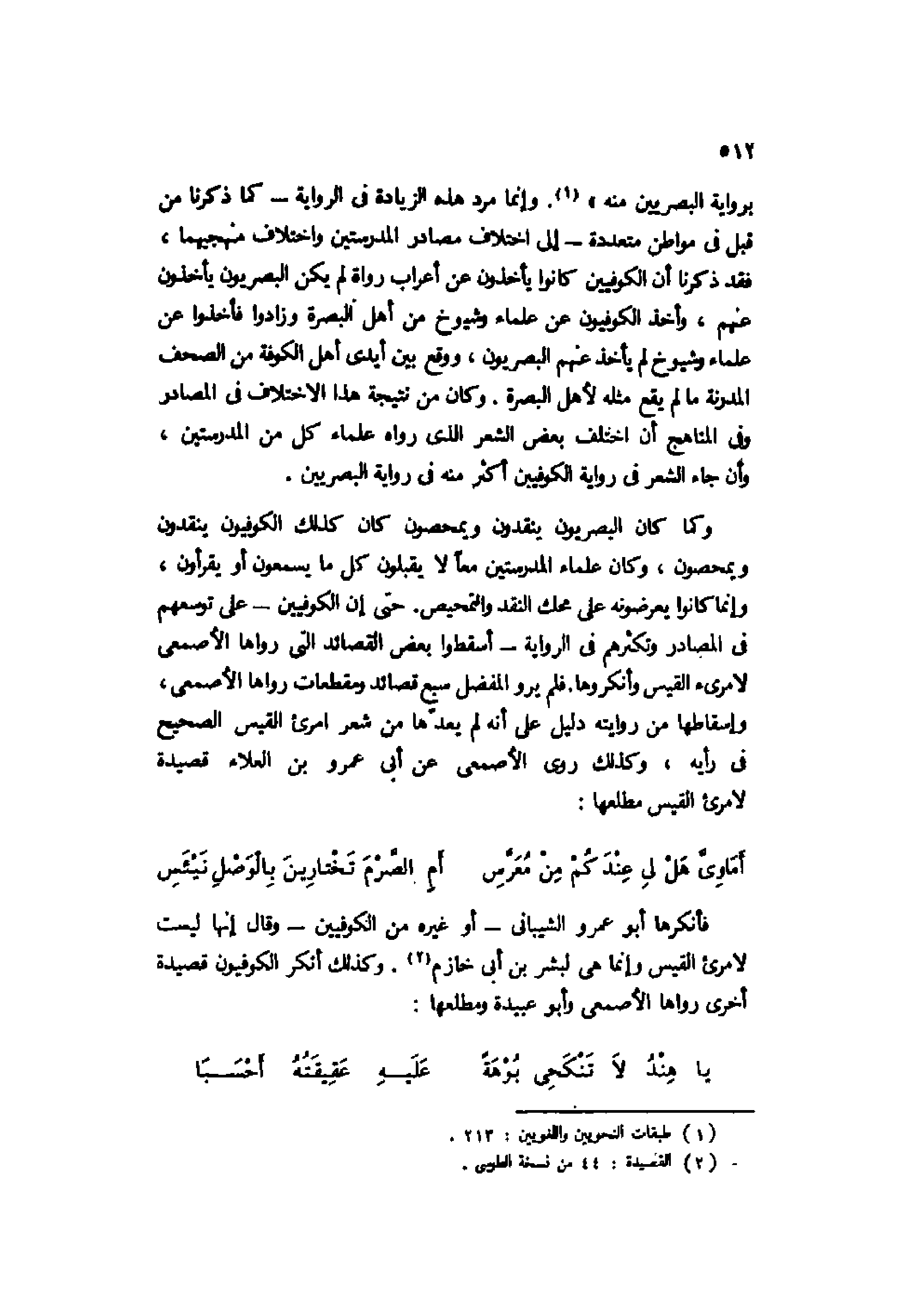 فأنكرها أبو عمرو الشيباني -أو غيره من الكوفيين- وقال إنها ليست لامرئ القيس وإنما هي لبشر بن أبي خازم2. وكذلك أنكر الكوفيون قصيدة أخرى رواها الأصمعي وأبو عبيدة ومطلعها:
