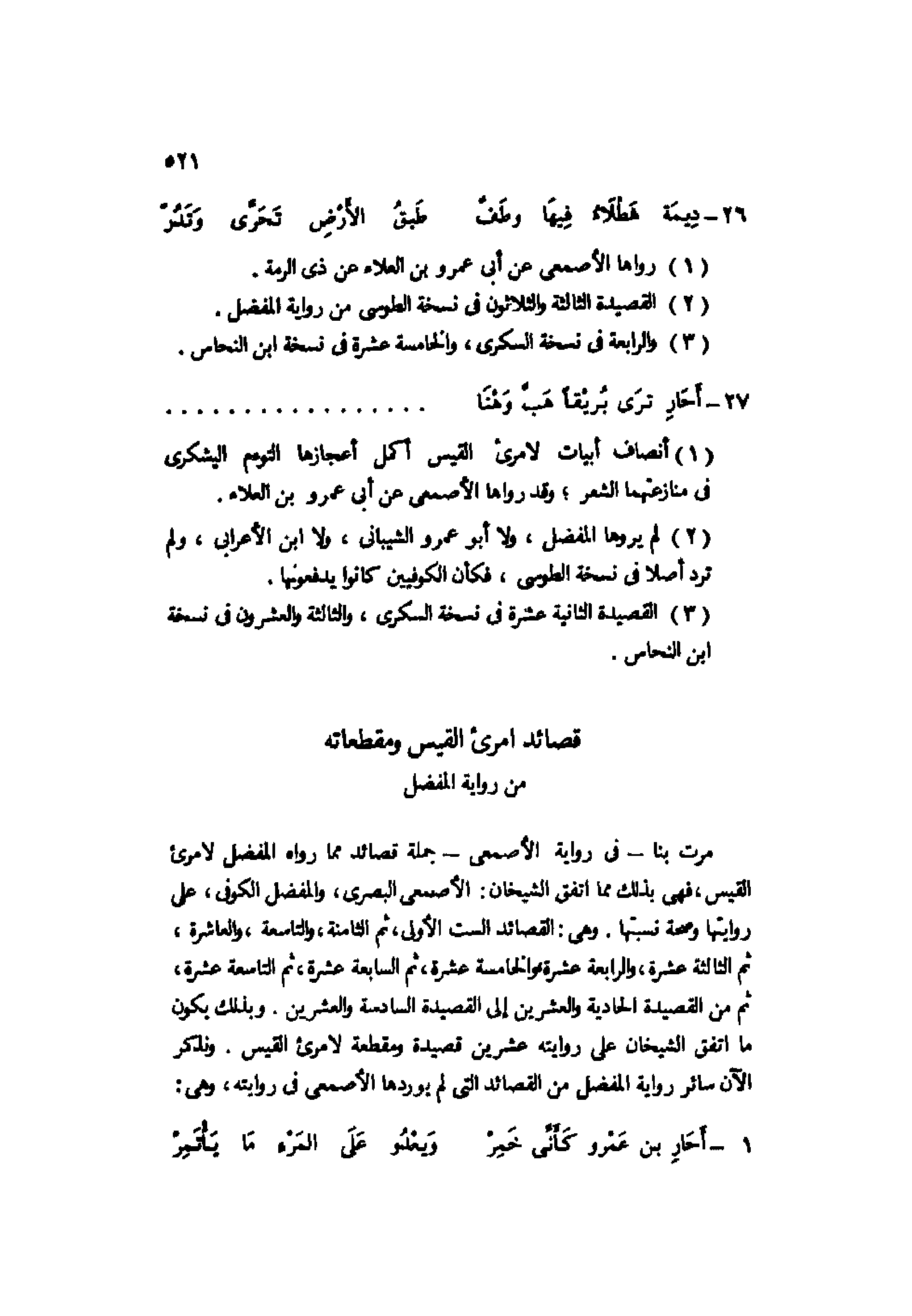 قصائد امرئ القيس ومقطعاته من رواية المفضل: