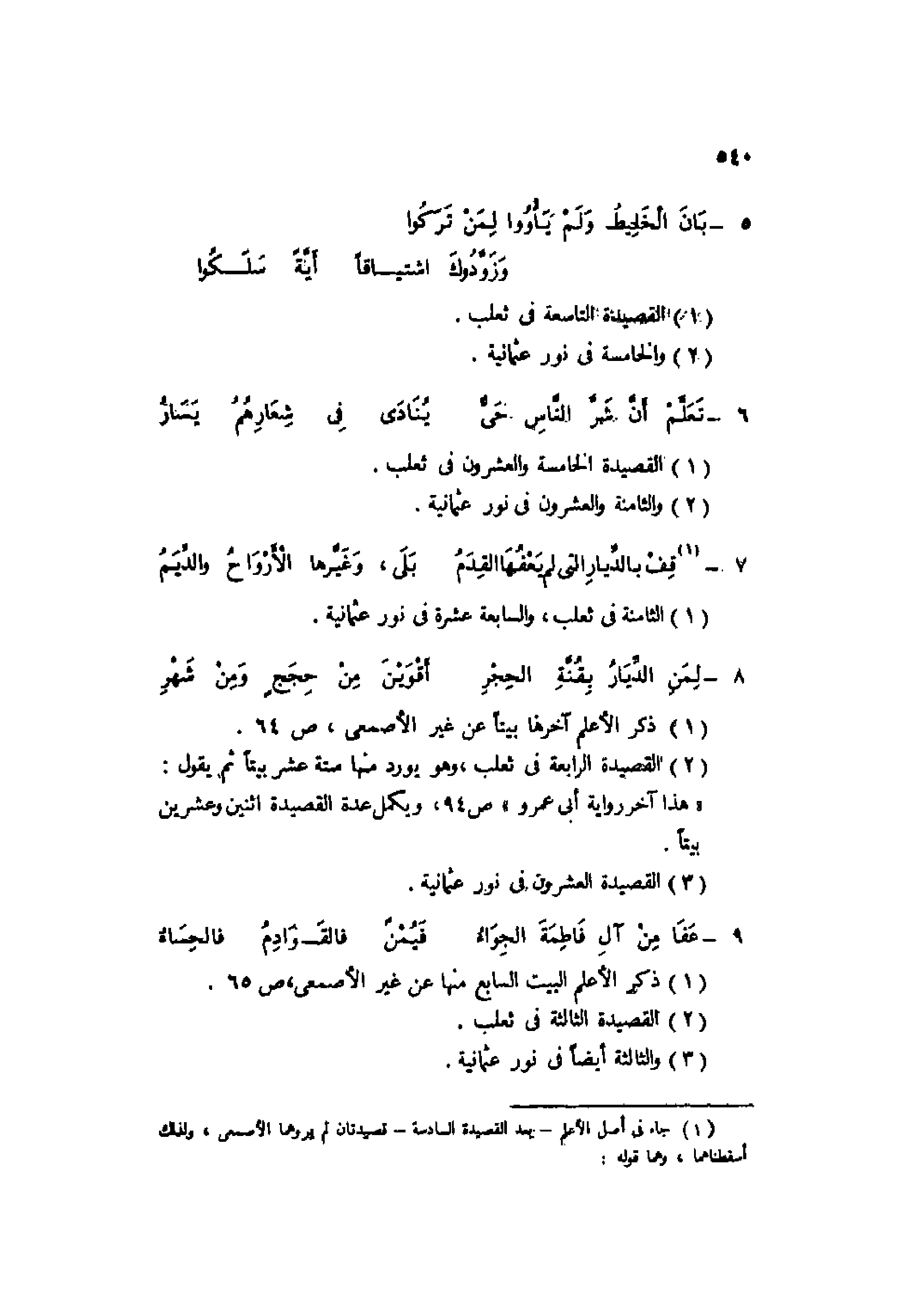 1- ذكر الأعلم البيت السابع منها عن غير الأصمعي، ص65.