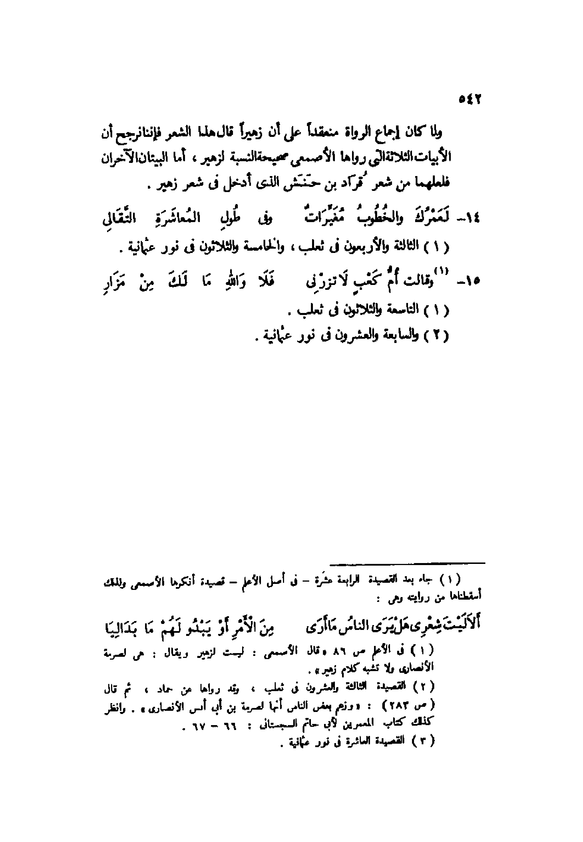 1 جاء بعد القصيدة الرابعة عشرة -في أصل الأعلم- قصيدة أنكرها الأصمعي ولذلك أسقطناها من روايته وهي: