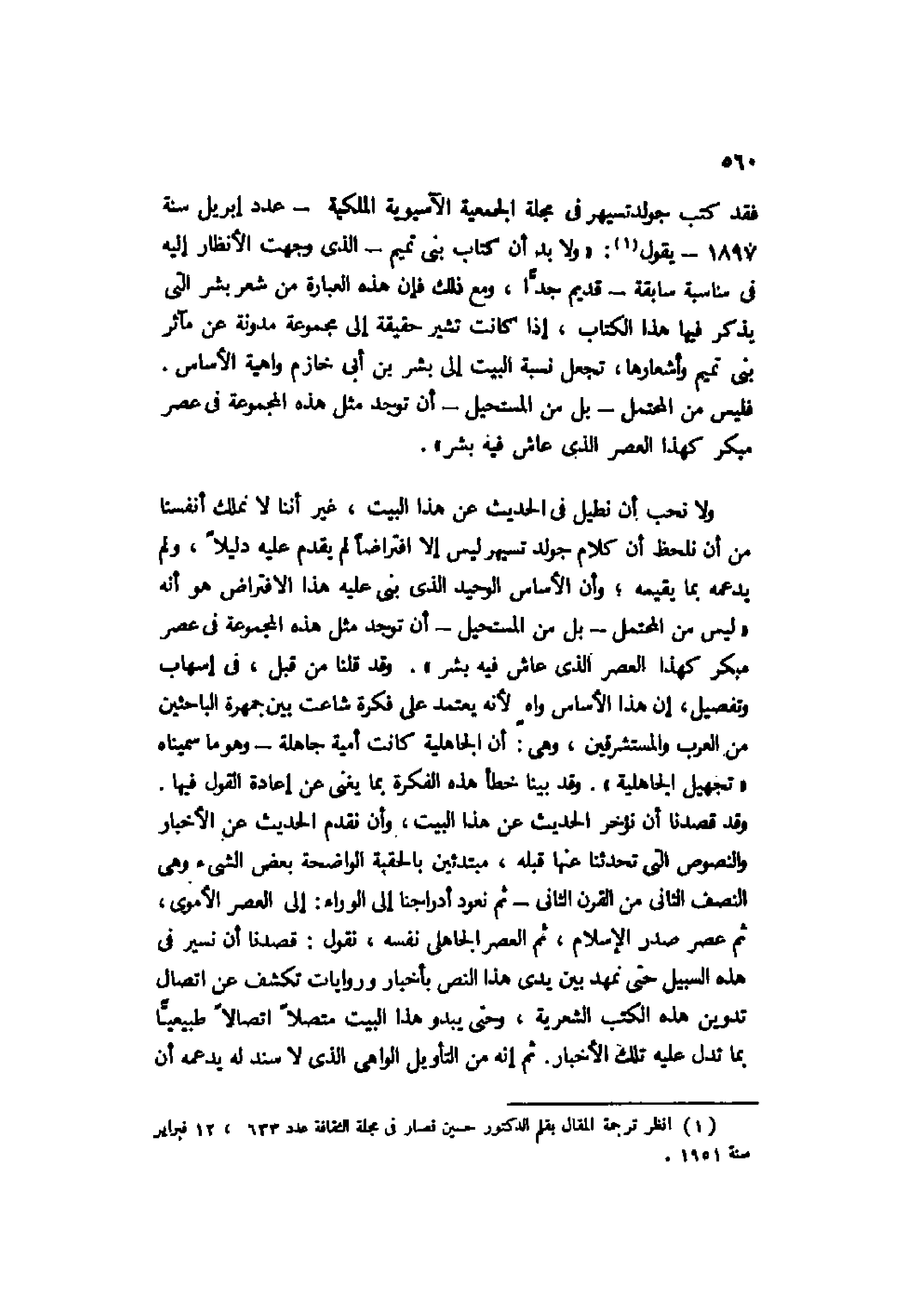 1 انظر ترجمة المقال بقلم الدكتور حسين نصار في مجلسة الثقافة عدد 633، 12 فبراير سنة 1951.