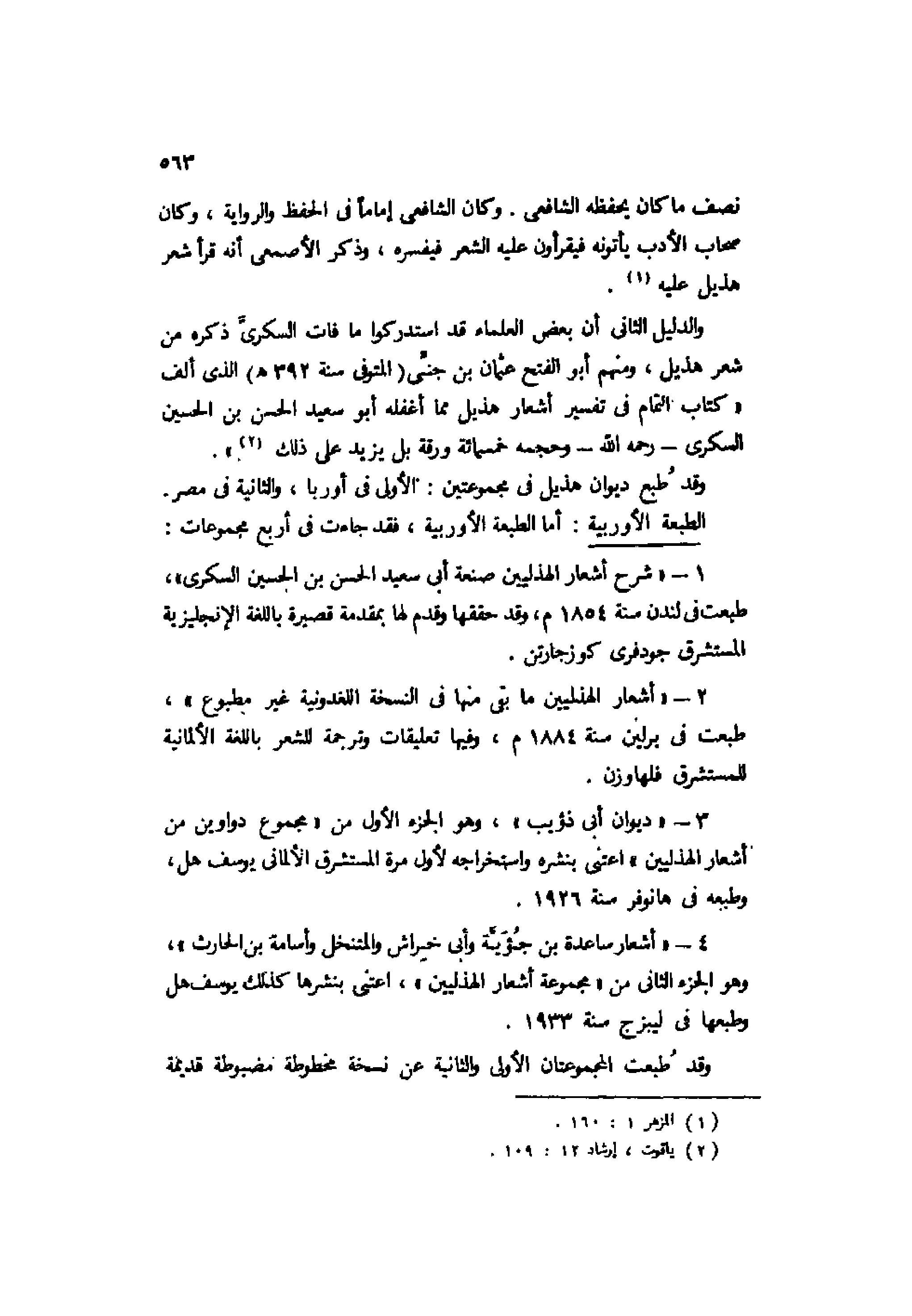 2- "أشعار الهذليين ما بقي منها في النسخة اللغدونية غير مطبوع، طبعت في برلين سنة 1884م، وفيها تعليقات وترجمة للشعر باللغة الألمانية للمستشرق فلهاوزن.