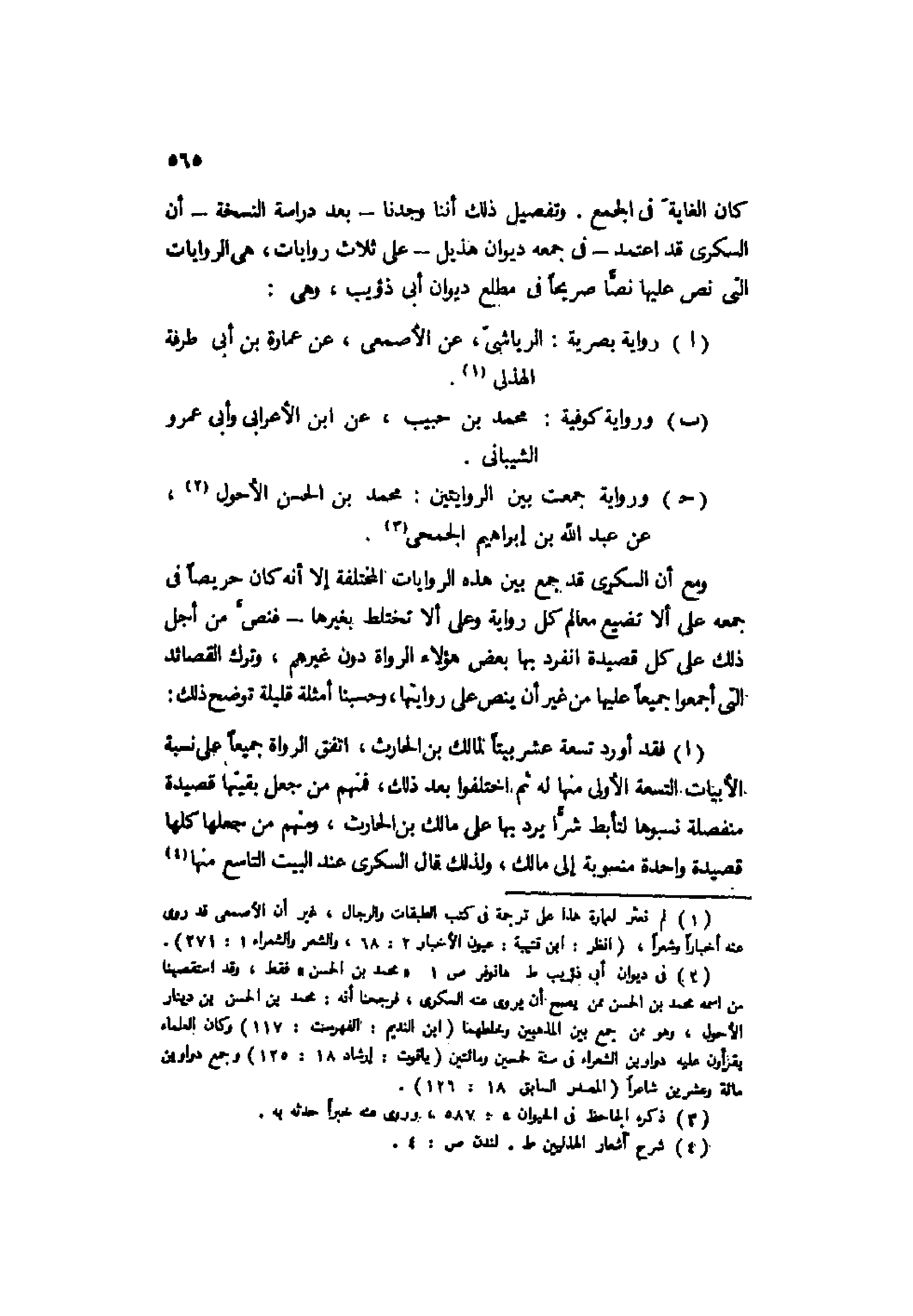 كان الغاية في الجمع. وتفصيل ذلك أننا وجدنا -بعد دراسة النسخة- أن السكري قد اعتمد -في جمعه ديوان هذيل- على ثلاث روايات، هي الروايات التي نص عليها نصًّا صريحًا في مطلع ديوان أبي ذؤيب، وهي.