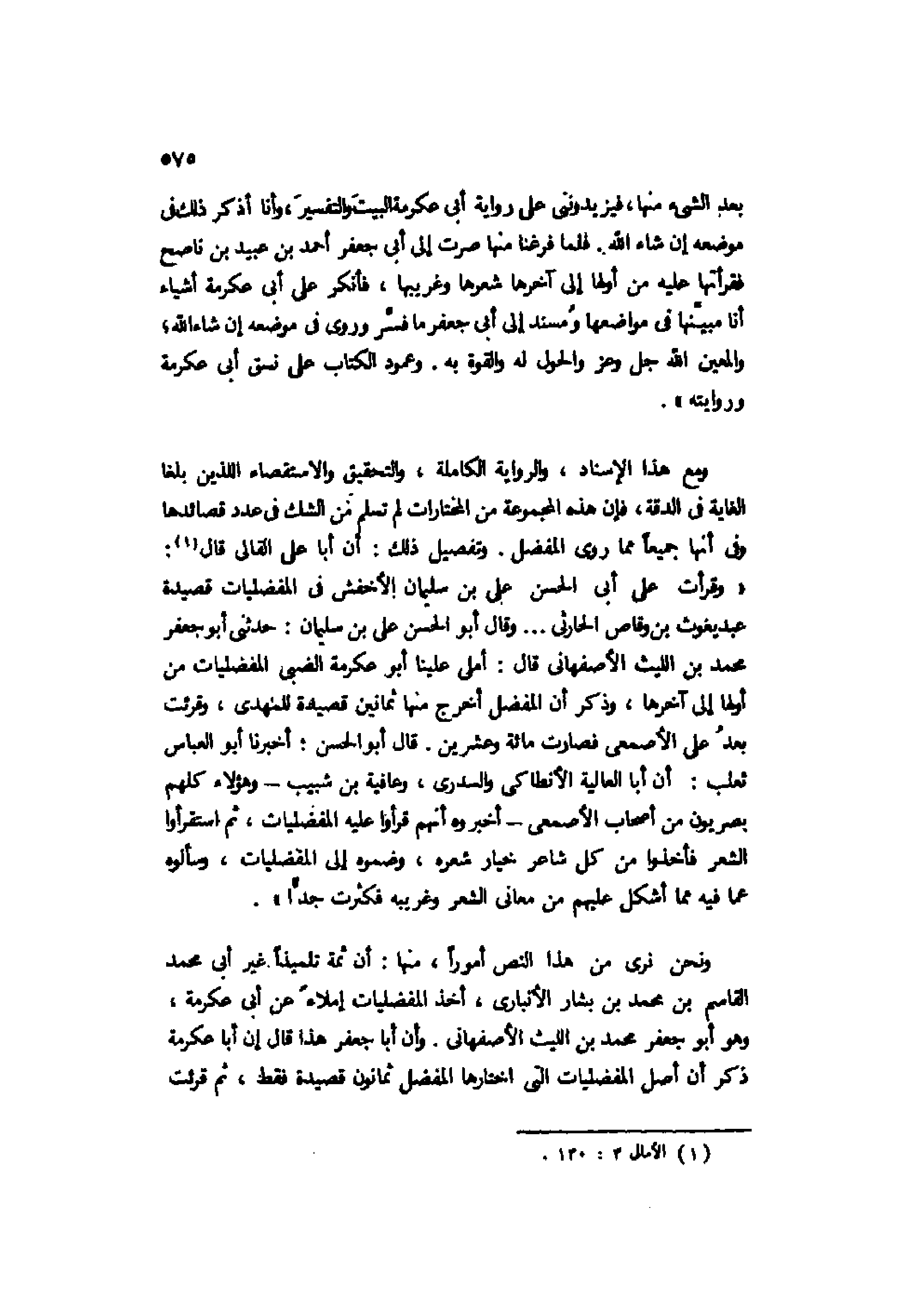 ونحن نرى من هذا النص أمورًا، منها: أن ثمة تلميذًا غير أبي محمد القاسم بن محمد بن بشار الأنباري، أخذ المفضليات إملاءً عن أبي عكرمة، وهو أبو جعفر محمد بن الليث الأصفهاني. وأن أبا جعفر هذا قال إن أبا عكرمة ذكر أن أصل المفضليات التي اختارها المفضل ثمانون قصيدة فقط، ثم قرئت