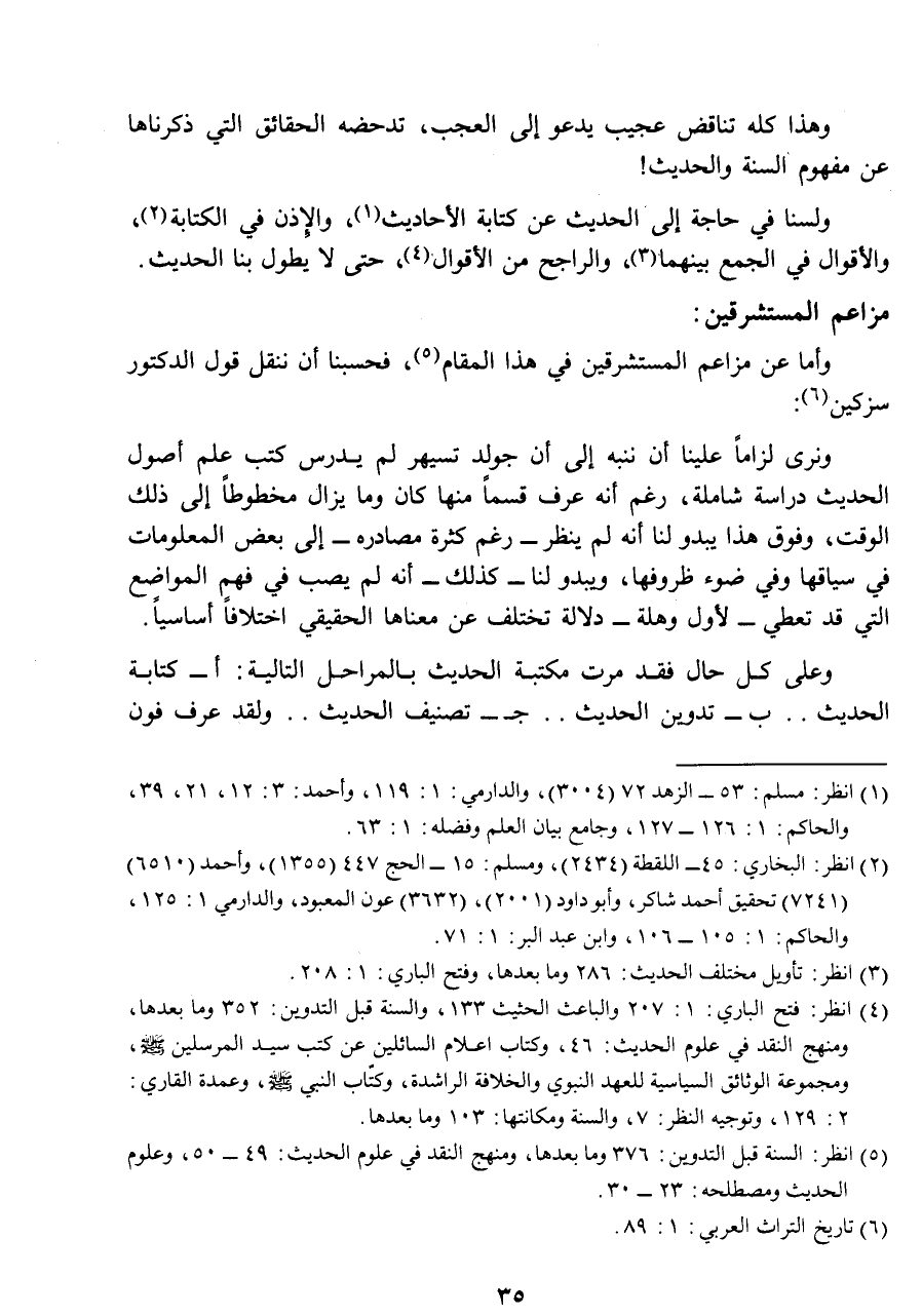 (5) انظر: " السُنَّة قبل التدوين ": ص 376 وما بعدها، و " منهج النقد في علوم الحديث: ص 49 - 50، و " علوم الحديث ومصطلحه ": ص 23 - 30.