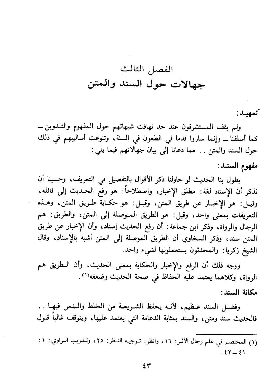 (1) " المختصر في علم رجال الأثر ": ص 16، وانظر " توجيه النظر ": ص 25، و " تدريب الراوي ": 1/ 41، 42.
