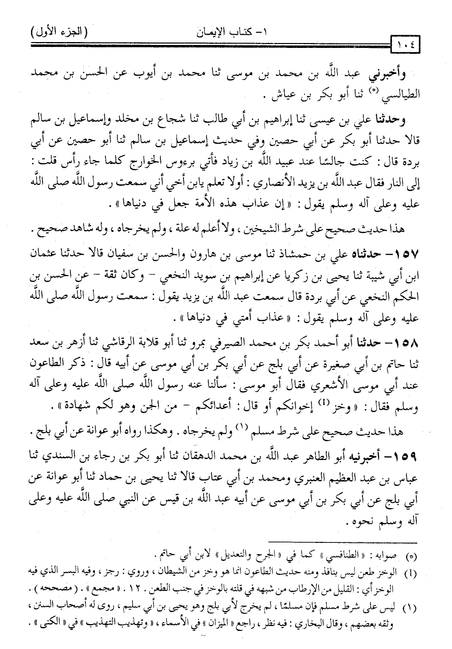 159 - أَخْبَرَنِيهِ أَبُو الطَّاهِرِ عَبْدُ اللَّهِ بْنُ مُحَمَّدٍ الدِّهْقَانُ ، ثنا أَبُو بَكْرِ بْنُ رَجَاءِ بْنِ السِّنْدِيِّ ، ثنا عَبَّاسُ بْنُ عَبْدِ الْعَظِيمِ الْعَنْبَرِيُّ ، وَمُحَمَّدُ بْنُ أَبِي عَتَّابٍ ، قَالَا: ثنا يَحْيَى بْنُ حَمَّادٍ ، ثنا أَبُو عَوَانَةَ ، عَنْ أَبِي بَكْرِ بْنِ أَبِي مُوسَى ، عَنْ أَبِيهِ عَبْدِ اللَّهِ بْنِ قَيْسٍ ، عَنِ النَّبِيِّ صَلَّى اللَّهُ عَلَيْهِ وَسَلَّمَ نَحْوَهُ