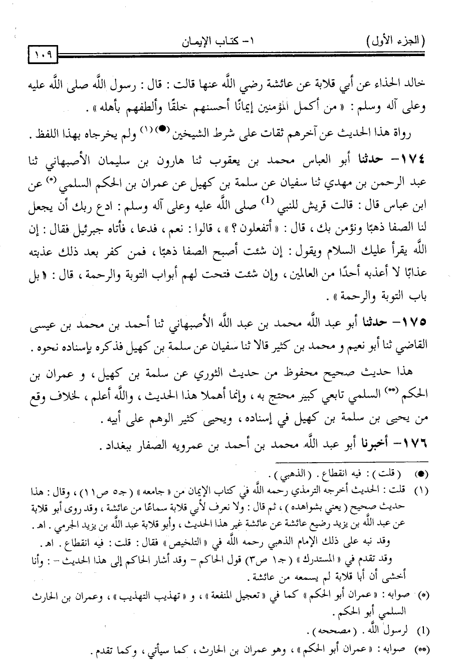" هَذَا حَدِيثٌ صَحِيحٌ مَحْفُوظٌ مِنْ حَدِيثِ الثَّوْرِيِّ ، عَنْ سَلَمَةَ بْنِ كُهَيْلٍ وَعِمْرَانَ بْنِ الْحَكَمِ السُّلَمِيِّ تَابِعِيٌّ كَبِيرٌ مُحْتَجٌّ بِهِ ، وَإِنَّمَا أَهْمَلَا هَذَا الْحَدِيثَ - وَاللَّهُ أَعْلَمُ - لِخِلَافٍ وَقَعَ مِنْ يَحْيَى بْنِ سَلَمَةَ بْنِ كُهَيْلٍ فِي إِسْنَادِهِ وَيَحْيَى كَثِيرُ الْوَهْمِ عَلَى أَبِيهِ "