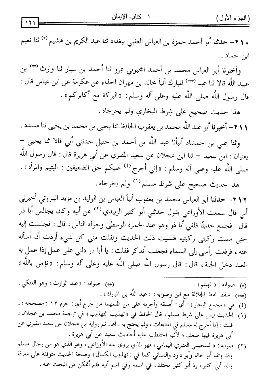 211 - أَخْبَرَنَا أَبُو عَبْدِ اللَّهِ مُحَمَّدُ بْنُ يَعْقُوبَ الْحَافِظُ ، ثنا يَحْيَى بْنُ مُحَمَّدِ بْنِ يَحْيَى ، ثنا مُسَدَّدٌ ، وَثنا عَلِيُّ بْنُ حَمْشَاذَ ، أَنْبَأَنَا عَبْدُ اللَّهِ بْنُ أَحْمَدَ بْنِ حَنْبَلٍ ، حَدَّثَنِي أَبِي ، قَالَا: ثنا يَحْيَى - يَعْنِيَانِ ابْنَ سَعِيدٍ - ثنا ابْنُ عَجْلَانَ ، عَنْ سَعِيدٍ الْمَقْبُرِيِّ ، عَنْ أَبِي هُرَيْرَةَ ، قَالَ: قَالَ رَسُولُ اللَّهِ صَلَّى اللَّهُ عَلَيْهِ وَسَلَّمَ: " إِنِّي أُحَرِّجُ عَلَيْكُمْ حَقَّ الضَّعِيفَيْنِ الْيَتِيمِ وَالْمَرْأَةِ " .