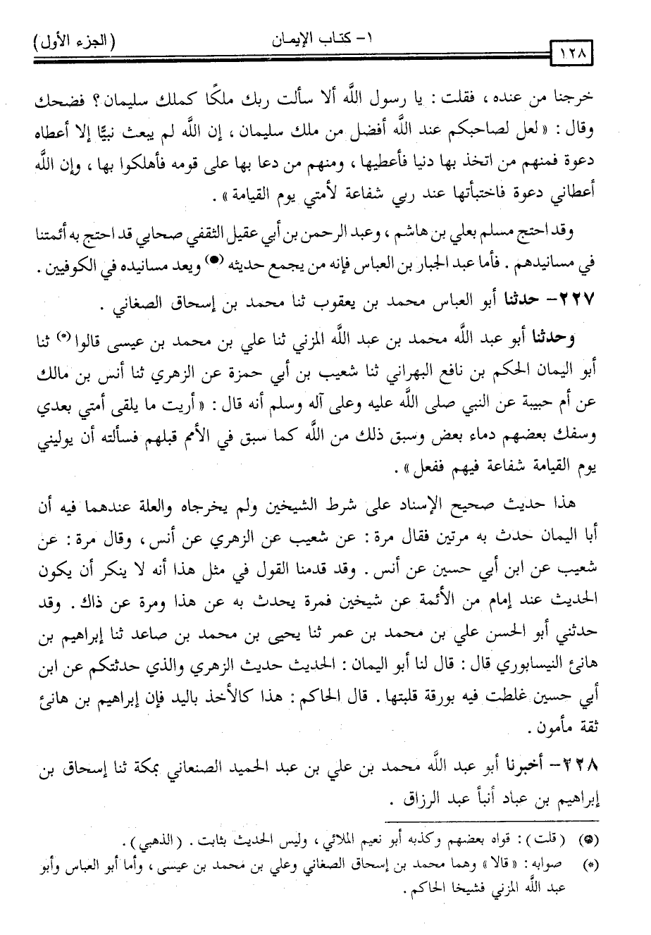 227 - حَدَّثَنَا أَبُو الْعَبَّاسِ مُحَمَّدُ بْنُ يَعْقُوبَ ، ثنا مُحَمَّدُ بْنُ إِسْحَاقَ الصَّغَانِيُّ ، وَحدثنا أَبُو عَبْدِ اللَّهِ مُحَمَّدُ بْنُ عَبْدِ اللَّهِ [الصَّفَّارُ ، ثنا أَحْمَدُ بْنُ مَهْدِيِّ الْأَصْبَهَانِيُّ ، وَأَخْبَرَنِي أَبُو مُحَمَّدٍ أَحْمَدُ بْنُ عَبْدِ اللَّهِ] الْمُزَنِيُّ ، ثنا عَلِيُّ بْنُ مُحَمَّدِ بْنِ عِيسَى ، قَالُوا: ثنا أَبُو الْيَمَانِ الْحَكَمُ بْنُ نَافِعٍ الْبَهْرَانِيُّ ، ثنا شُعَيْبُ بْنُ أَبِي حَمْزَةَ ، عَنِ الزُّهْرِيِّ ، ثنا أَنَسُ بْنُ مَالِكٍ ، عَنْ أُمِّ حَبِيبَةَ ، عَنِ النَّبِيِّ صَلَّى اللَّهُ عَلَيْهِ وَسَلَّمَ أَنَّهُ قَالَ: " أُرِيتُ مَا يَلْقَى أُمَّتِي بَعْدِي ، وَسَفْكَ بَعْضِهِمْ دِمَاءَ بَعْضٍ ، وَسَبَقَ ذَلِكَ مِنَ اللَّهِ كَمَا سَبَقَ فِي الْأُمَمِ قَبْلَهُمْ ، فَسَأَلْتُهُ أَنْ يُولِيَنِي يَوْمَ الْقِيَامَةِ شَفَاعَةً فِيهِمْ فَفَعَلَ " .