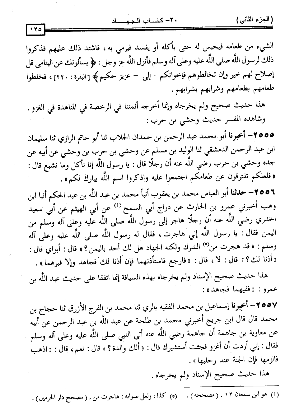 " إِنَّمَا اتَّفَقَا عَلَى حَدِيثِ عَبْدِ اللَّهِ بْنِ عَمْرٍو فَفِيهِمَا فَجَاهِدْ "