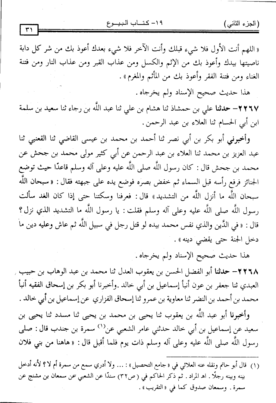 2267 - حَدَّثَنَا عَلِيُّ بْنُ حَمْشَاذٍ ، حَدَّثَنَا هِشَامُ بْنُ عَلِيٍّ ، حَدَّثَنَا عَبْدُ اللَّهِ بْنُ رَجَاءٍ ، حَدَّثَنَا سَعِيدُ بْنُ سَلَمَةَ بْنِ أَبِي الْحُسَامِ ، حَدَّثَنَا الْعَلَاءُ بْنُ عَبْدِ الرَّحْمَنِ ،