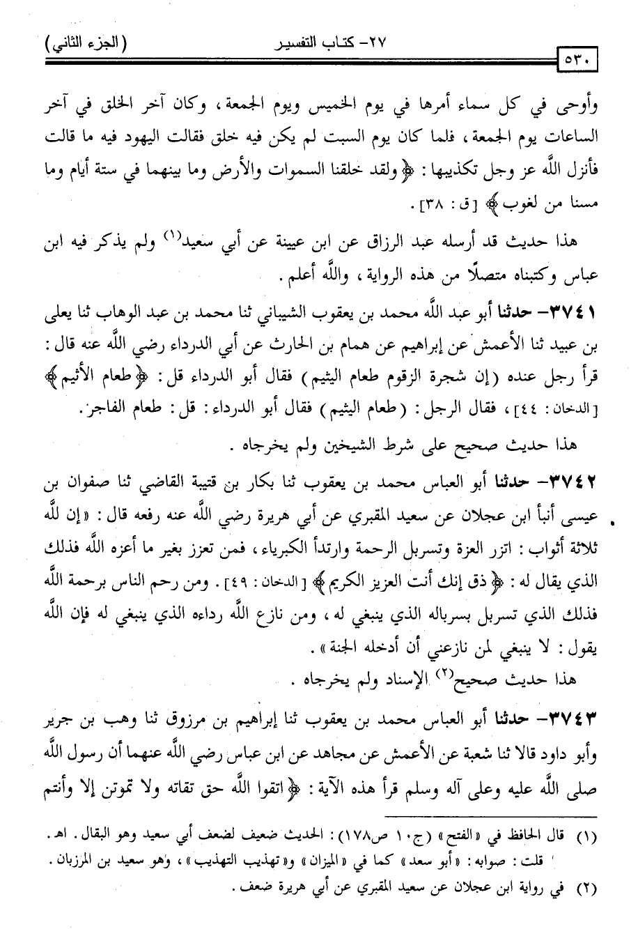 " هَذَا حَدِيثٌ أَخْرَجَهُ الْإِمَامُ أَبُو يَعْقُوبَ الْحَنْظَلِيُّ فِي تَفْسِيرِ قَوْلِهِ { خُذُوهُ فَاعْتِلُوهُ إِلَى سَوَاءِ الْجَحِيمِ ، ثُمَّ صُبُّوا فَوْقَ رَأْسِهِ مِنْ عَذَابِ الْحَمِيمِ } [الدخان: 48] "