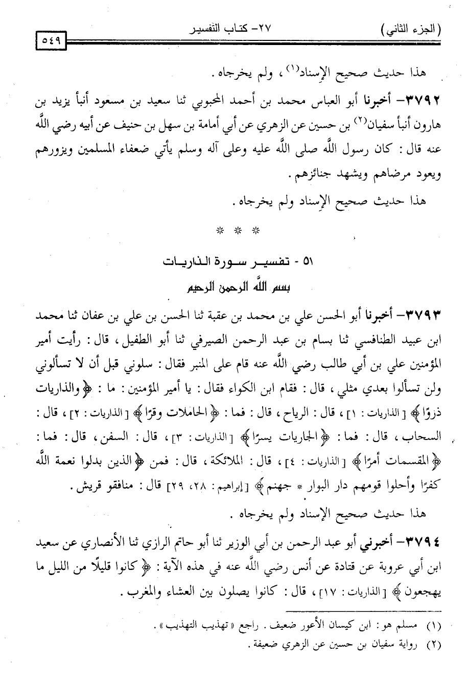 كتاب المستدرك على الصحيحين للحاكم (ت مقبل) (اسم الجزء: 2)