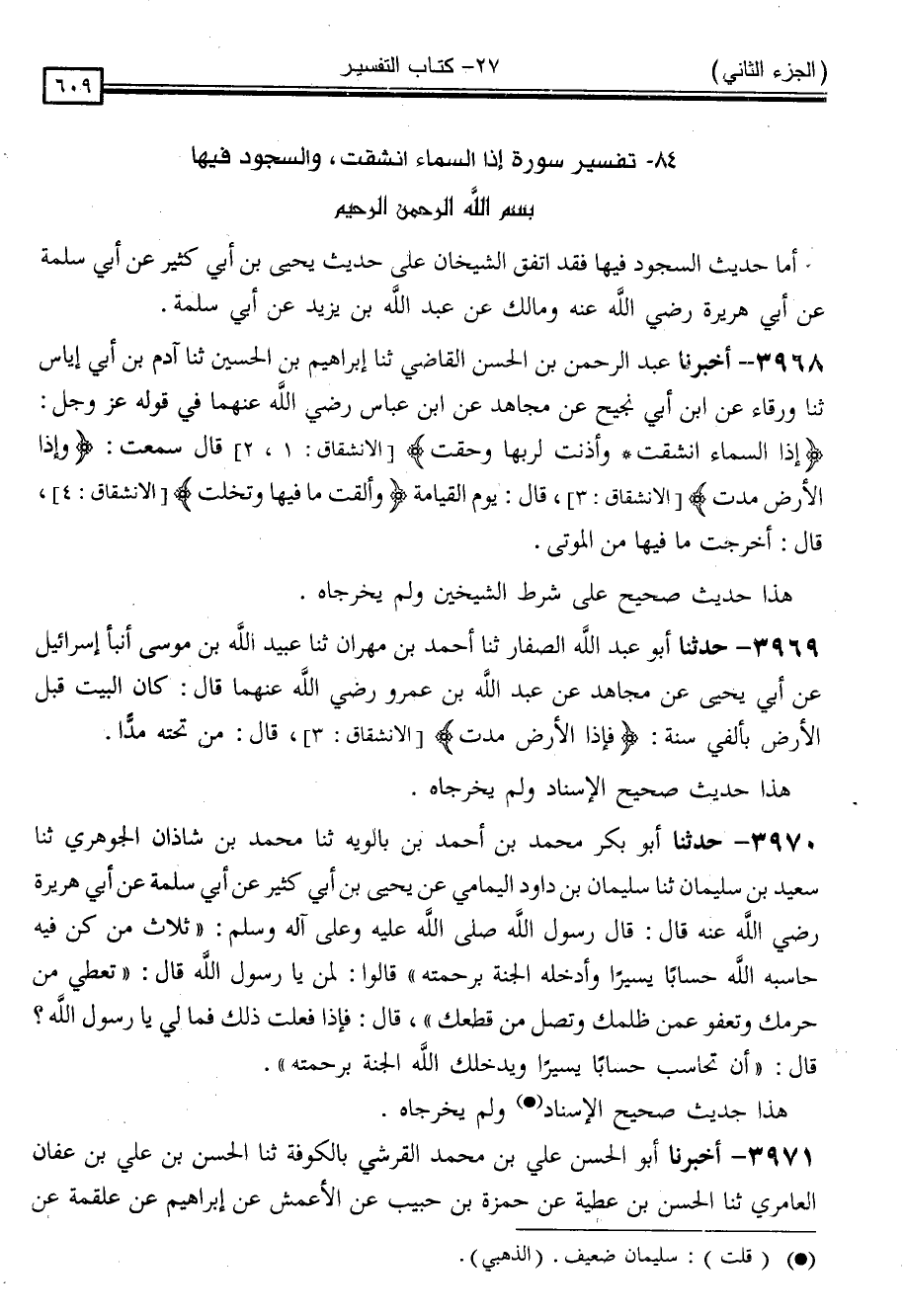 84 - تَفْسِيرُ سُورَةِ إِذَا السَّمَاءُ انْشَقَّتْ وَالسُّجُودِ فِيهَا