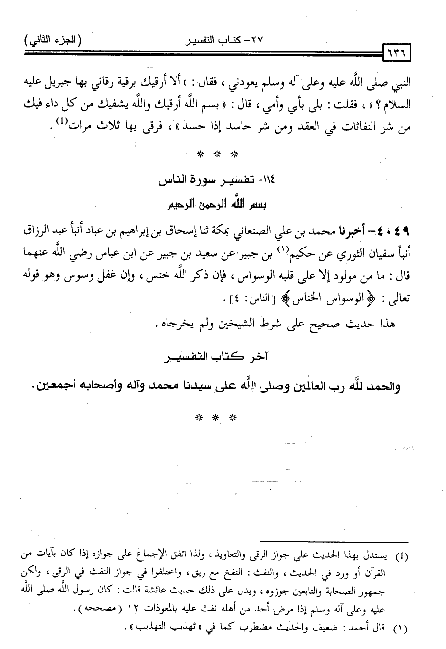 آخِرُ كِتَابِ التَّفْسِيرِ