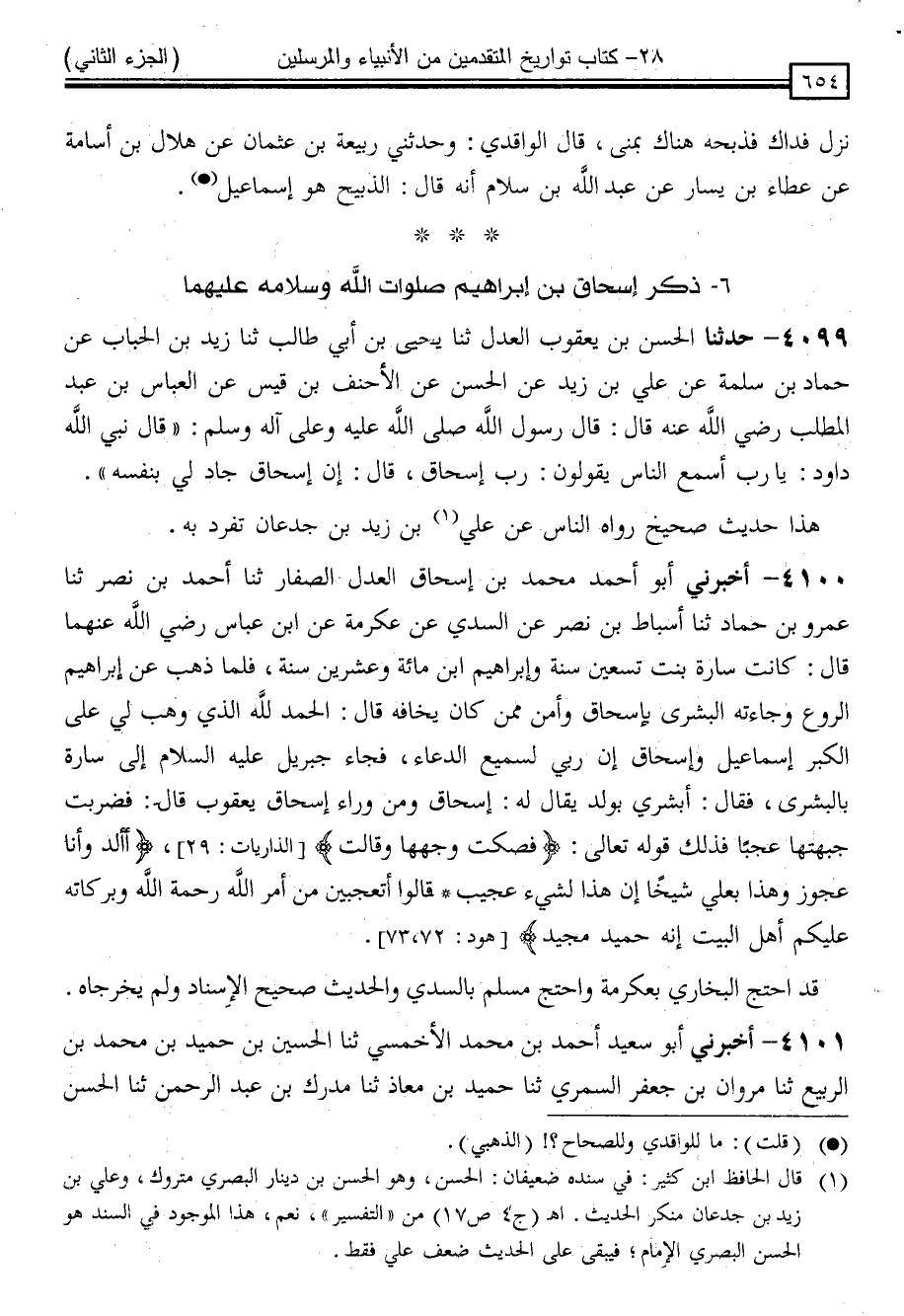 6 - ذِكْرُ إِسْحَاقَ بْنِ إِبْرَاهِيمَ صَلَوَاتُ اللَّهِ وَسَلَامُهُ عَلَيْهِمَا