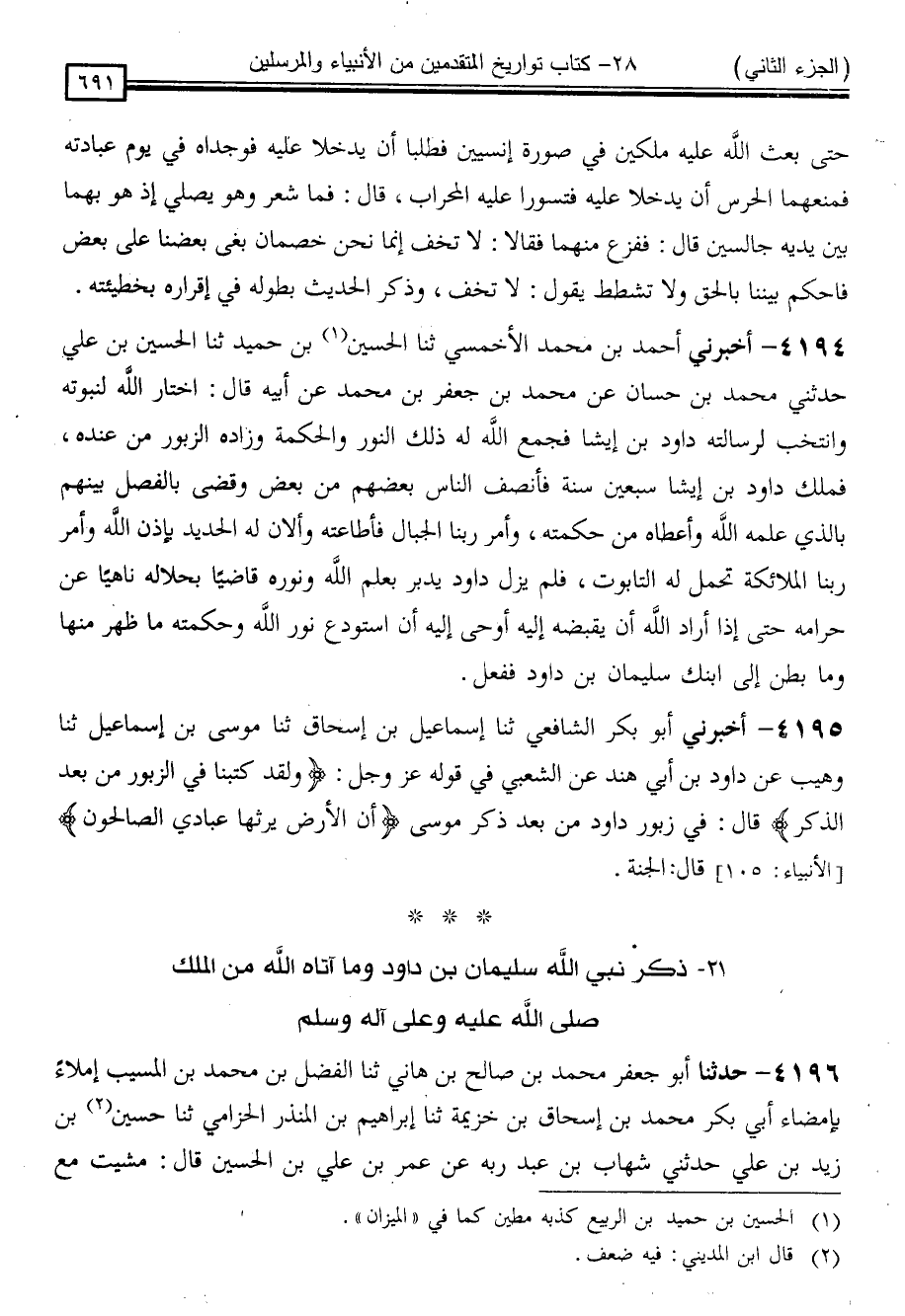 21 - ذِكْرُ نَبِيِّ اللَّهِ سُلَيْمَانَ بْنِ دَاوُدَ وَمَا آتَاهُ اللَّهُ مِنَ الْمُلْكِ صَلَّى اللَّهُ عَلَيْهِ وَسَلَّمَ