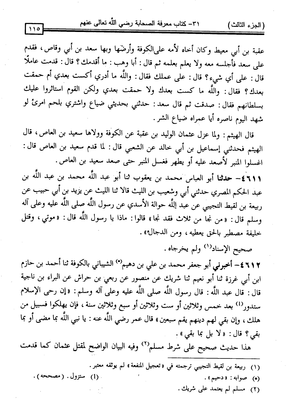 " هَذَا حَدِيثٌ صَحِيحٌ عَلَى شَرْطِ مُسْلِمٍ ، وَفِيهِ الْبَيَانُ الْوَاضِحُ لِمَقْتَلِ عُثْمَانَ كَمَا قَدَّمْتُ -[116]- ذِكْرَهُ مِنْ تَارِيخِ الْمَقْتَلِ سَنَةَ خَمْسٍ وَثَلَاثِينَ "