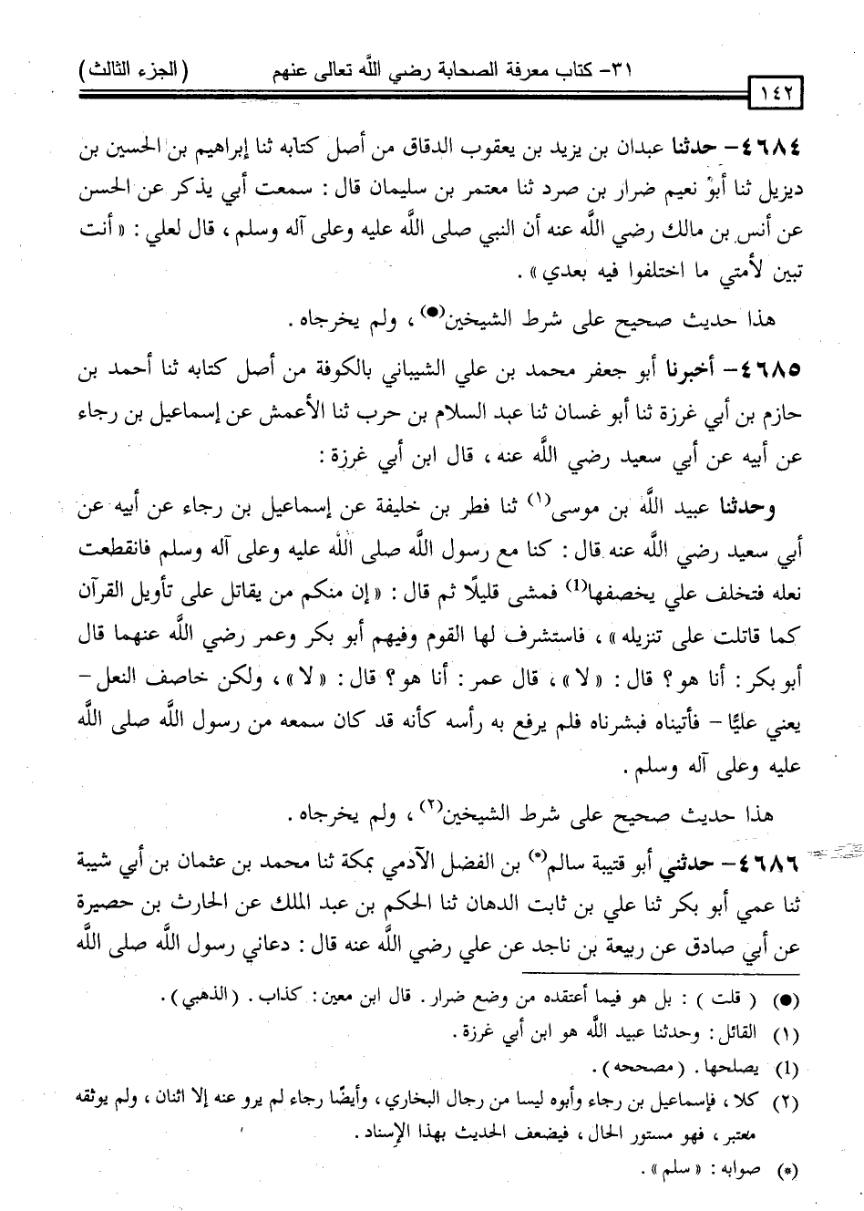 4685 - أَخْبَرَنَا أَبُو جَعْفَرٍ مُحَمَّدُ بْنُ عَلِيٍّ الشَّيْبَانِيُّ ، بِالْكُوفَةِ مِنْ أَصْلِ كِتَابِهِ ، ثنا أَحْمَدُ بْنُ حَازِمِ بْنِ أَبِي غَرَزَةَ ، ثنا أَبُو غَسَّانَ ، ثنا عَبْدُ السَّلَامِ بْنُ حَرْبٍ ، ثنا الْأَعْمَشُ ، عَنْ إِسْمَاعِيلَ بْنِ رَجَاءَ ، عَنْ أَبِيهِ ، عَنْ أَبِي سَعِيدٍ رَضِيَ اللَّهُ عَنْهُ ، قَالَ: ابْنُ أَبِي غَرَزَةَ ،