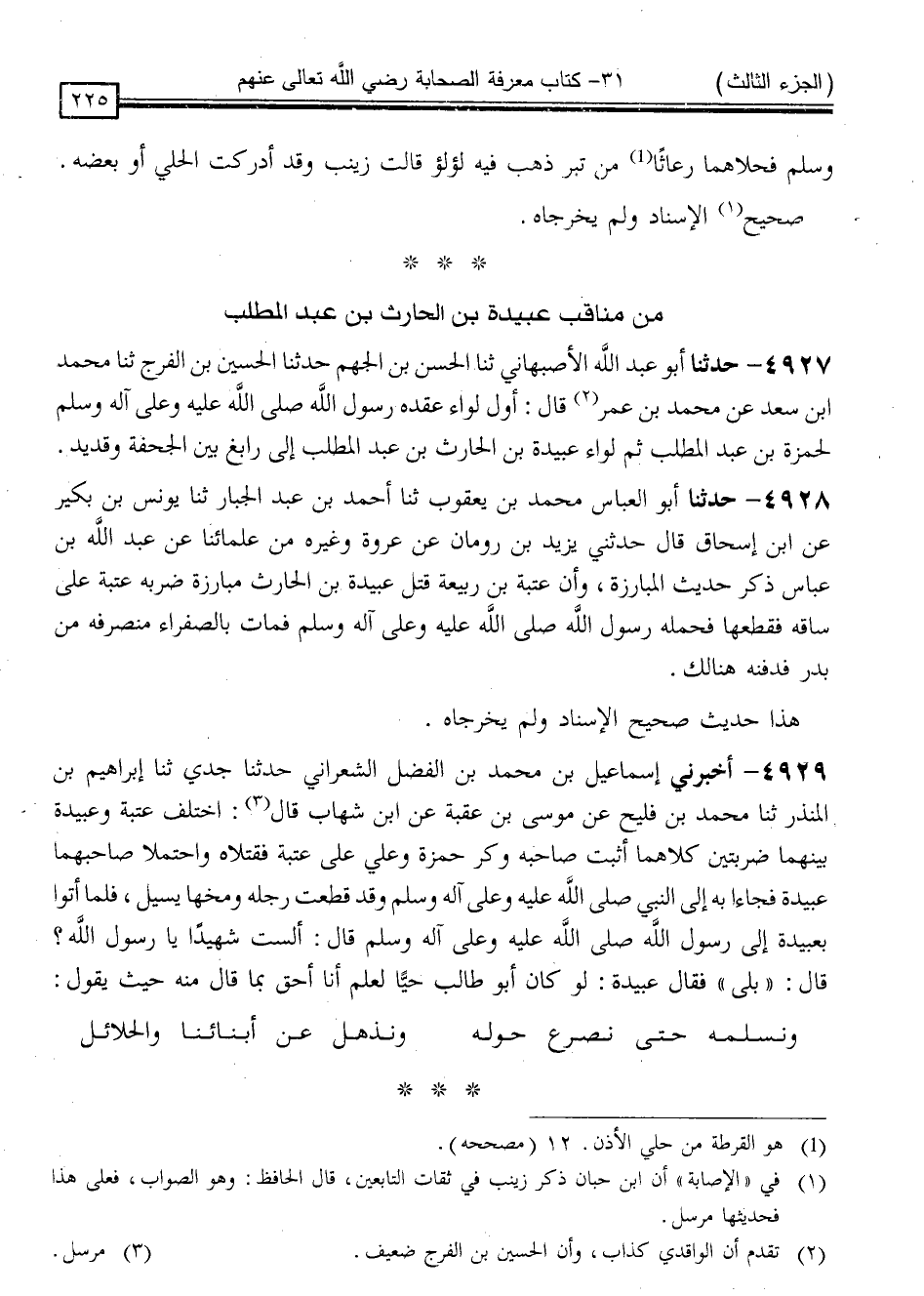 مِنْ مَنَاقِبِ عُبَيْدَةِ بْنِ الْحَارِثِ بْنِ عَبْدِ الْمُطَّلِبِ