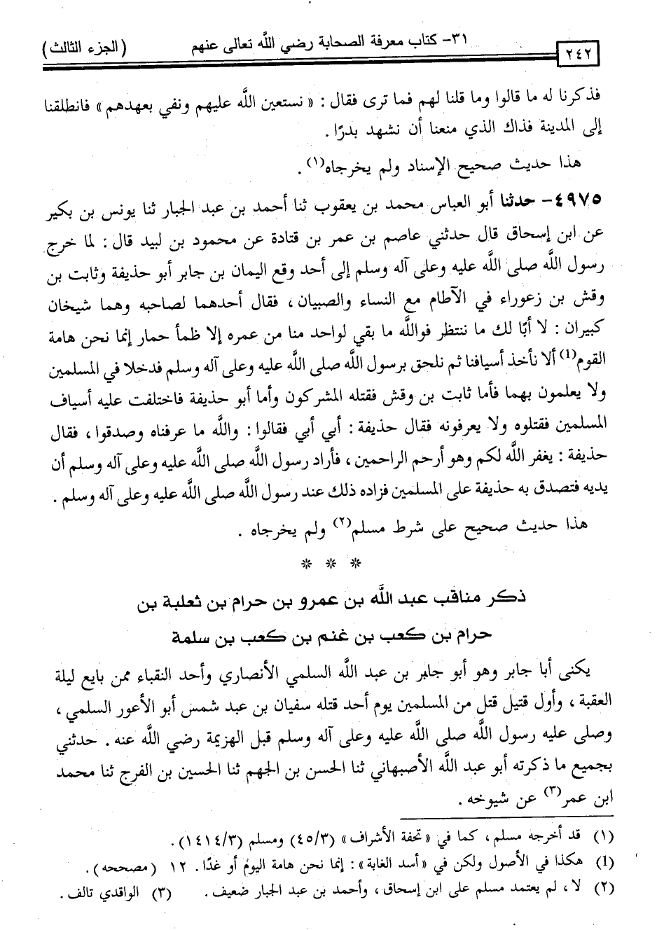 ذِكْرُ مَنَاقِبِ عَبْدِ اللَّهِ بْنِ عَمْرِو بْنِ حَرَامِ بْنِ ثَعْلَبَةَ بْنِ