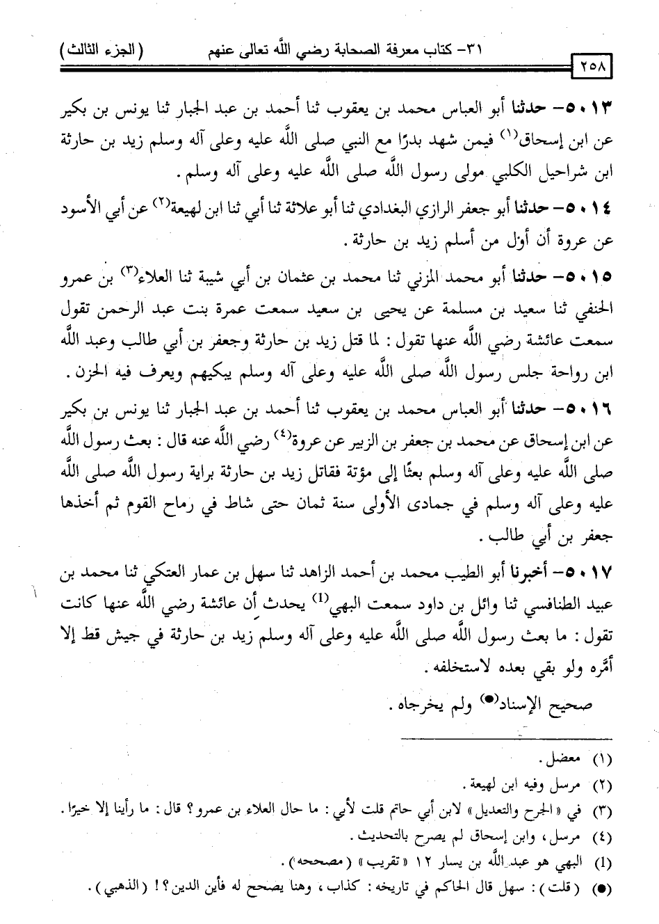 5013 - حَدَّثَنَا أَبُو الْعَبَّاسِ مُحَمَّدُ بْنُ يَعْقُوبَ ، ثنا أَحْمَدُ بْنُ عَبْدِ الْجَبَّارِ ، ثنا يُونُسُ بْنُ بُكَيْرٍ ، عَنِ ابْنِ إِسْحَاقَ ، " فِيمَنْ شَهِدَ بَدْرًا مَعَ النَّبِيِّ صَلَّى اللَّهُ عَلَيْهِ وَسَلَّمَ زَيْدُ بْنُ حَارِثَةَ بْنِ شَرَاحِيلَ الْكَلْبِيُّ مَوْلَى رَسُولِ اللَّهِ صَلَّى اللَّهُ عَلَيْهِ وَسَلَّمَ "