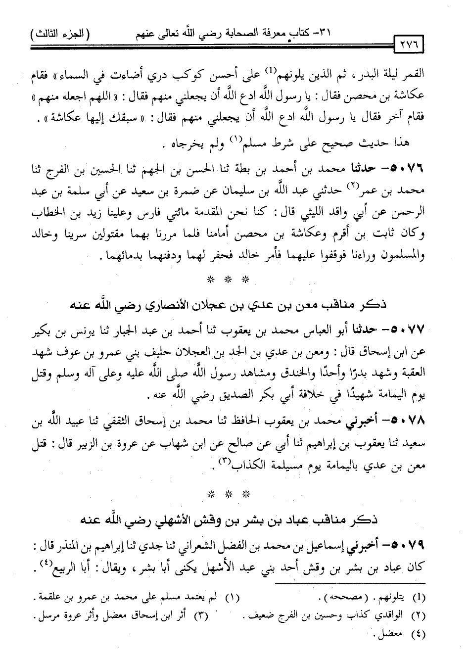 5077 - حَدَّثَنَا أَبُو الْعَبَّاسِ مُحَمَّدُ بْنُ يَعْقُوبَ ، ثنا أَحْمَدُ بْنُ عَبْدِ الْجَبَّارِ ، ثنا يُونُسُ بْنُ بُكَيْرٍ ، عَنِ ابْنِ إِسْحَاقَ قَالَ: " وَمَعْنُ بْنُ عَدِيِّ بْنِ الْجَدِّ بْنِ الْعَجْلَانِ حَلِيفُ بَنِي عَمْرِو بْنِ عَوْفٍ شَهِدَ الْعَقَبَةَ ، وَشَهِدَ بَدْرًا وَأُحُدًا وَالْخَنْدَقَ وَمَشَاهِدَ رَسُولِ اللَّهِ صَلَّى اللَّهُ عَلَيْهِ وَسَلَّمَ وَقُتِلَ يَوْمَ الْيَمَامَةِ شَهِيدًا فِي خِلَافَةِ أَبِي بَكْرٍ الصِّدِّيقِ رَضِيَ اللَّهُ عَنْهُ "