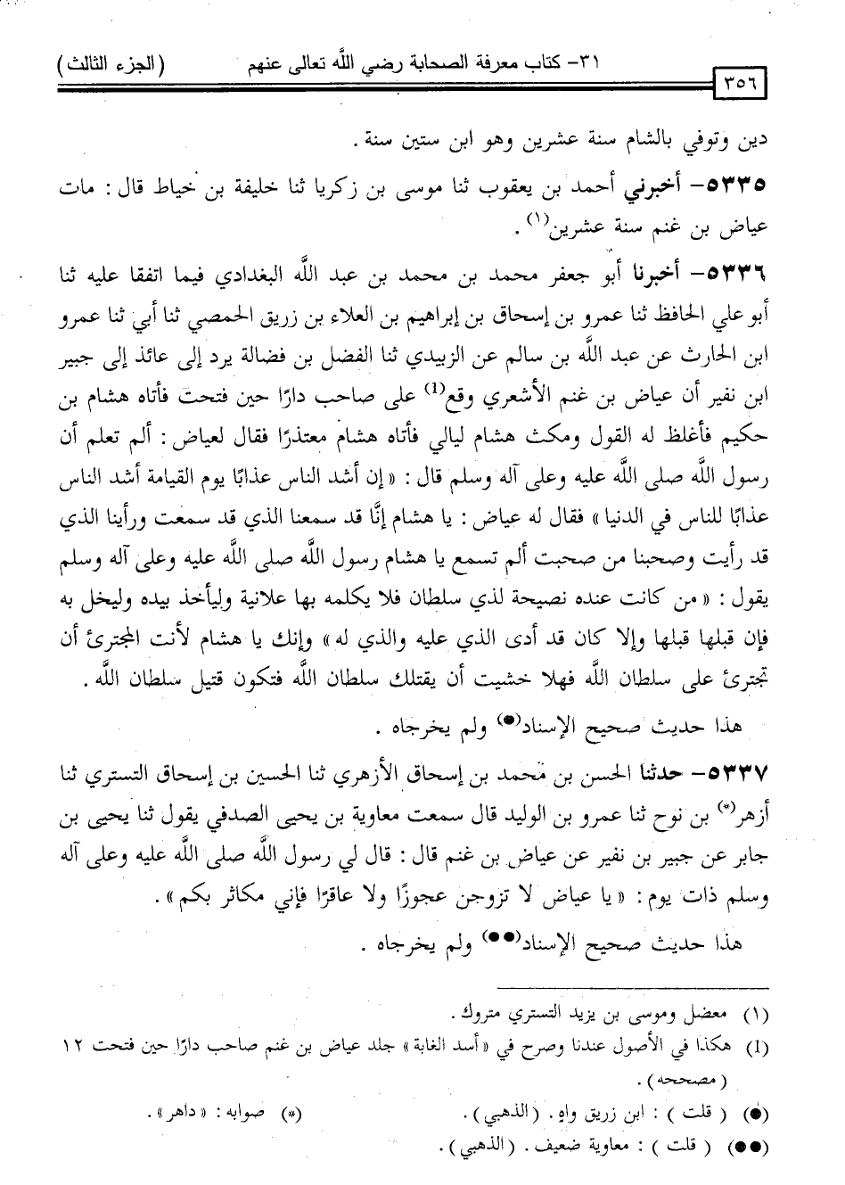 5335 - أَخْبَرَنِي أَحْمَدُ بْنُ يَعْقُوبَ ، ثَنَا مُوسَى بْنُ زَكَرِيَّا ، ثَنَا خَلِيفَةُ بْنُ خَيَّاطٍ ، قَالَ: " مَاتَ عِيَاضُ بْنُ غَنْمٍ سَنَةَ عِشْرِينَ "