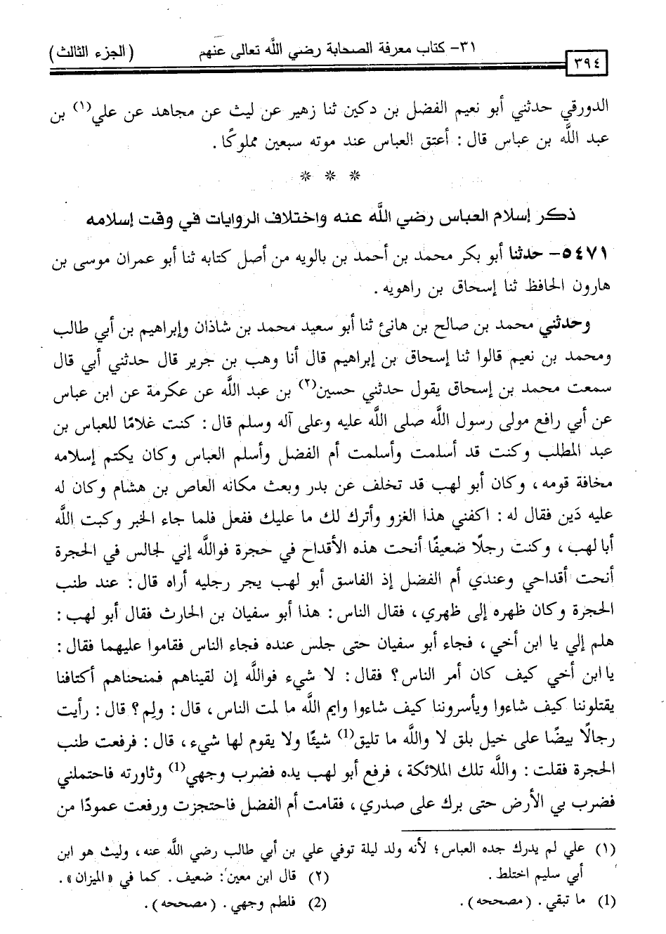 ذِكْرُ إِسْلَامِ الْعَبَّاسِ رَضِيَ اللَّهُ عَنْهُ ، وَاخْتِلَافُ الرِّوَايَاتِ فِي وَقْتِ إِسْلَامِهِ