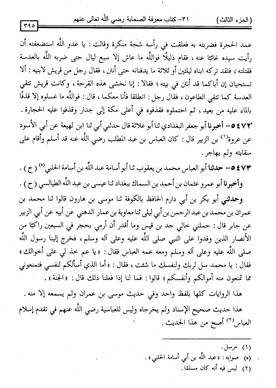 " وَلَيْسَ لِلْعَبَّاسِيَّةِ رَضِيَ اللَّهُ عَنْهُمْ فِي تَقَدُّمِ إِسْلَامِ الْعَبَّاسِ أَصَحُّ مِنْ هَذَا الْحَدِيثِ "