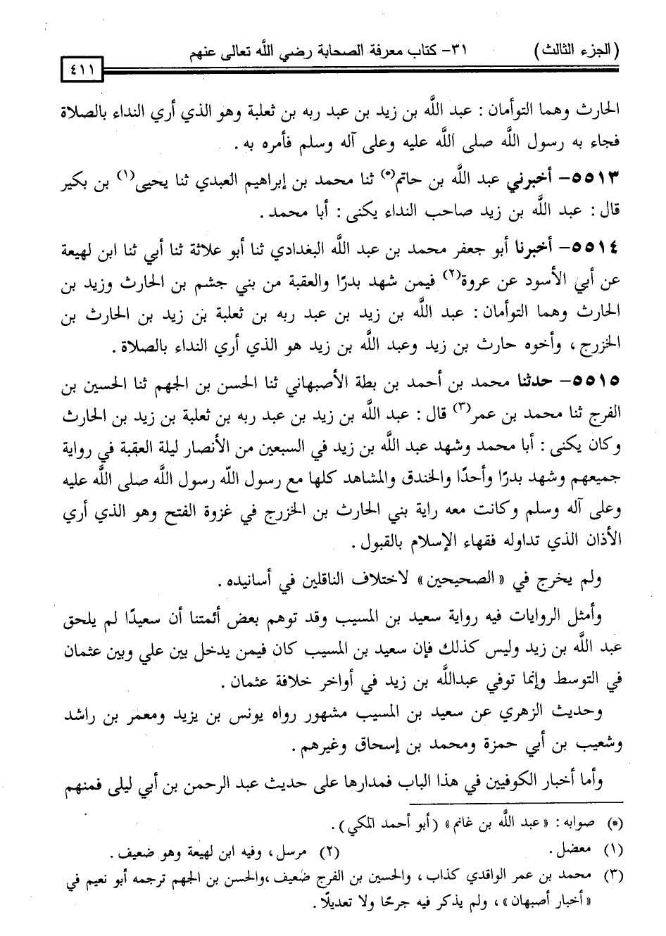 5513 - أَخْبَرَنِي عَبْدُ اللَّهِ بْنُ حَاتِمٍ * ، ثَنَا مُحَمَّدُ بْنُ إِبْرَاهِيمَ الْعَبْدِيُّ ، ثَنَا يَحْيَى بْنُ بُكَيْرٍ ، قَالَ: " عَبْدُ اللَّهِ بْنُ زَيْدٍ صَاحِبُ النِّدَاءِ يُكَنَّى أَبَا مُحَمَّدٍ "