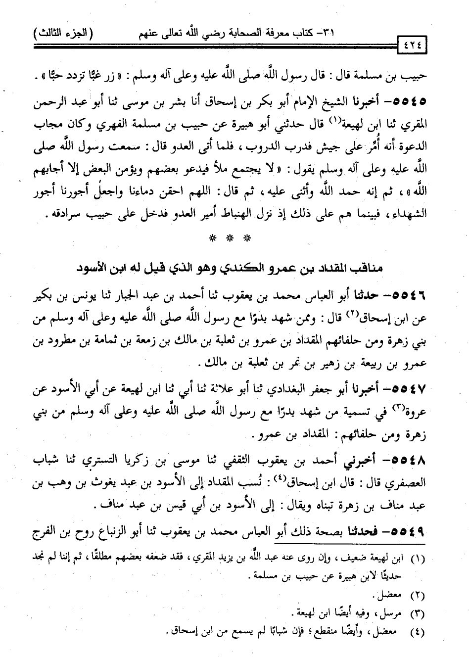 مَنَاقِبُ الْمِقْدَادِ بْنِ عَمْرٍو الْكِنْدِيُّ وَهُوَ الَّذِي قِيلَ لَهُ ابْنُ الْأَسْوَدِ