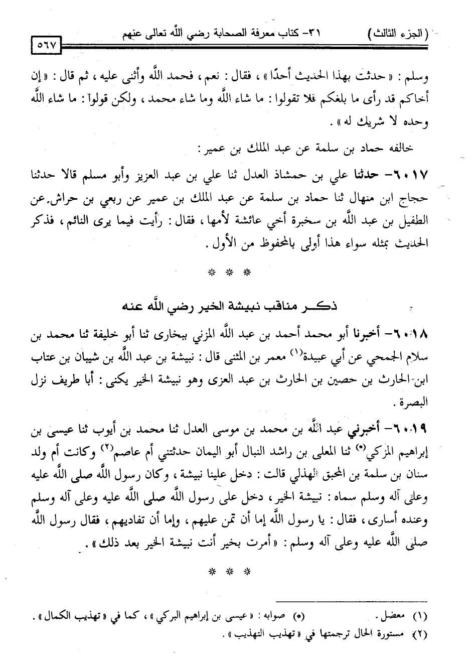 ذِكْرُ مَنَاقِبِ نُبَيْشَةَ الْخَيْرِ رَضِيَ اللَّهُ عَنْهُ