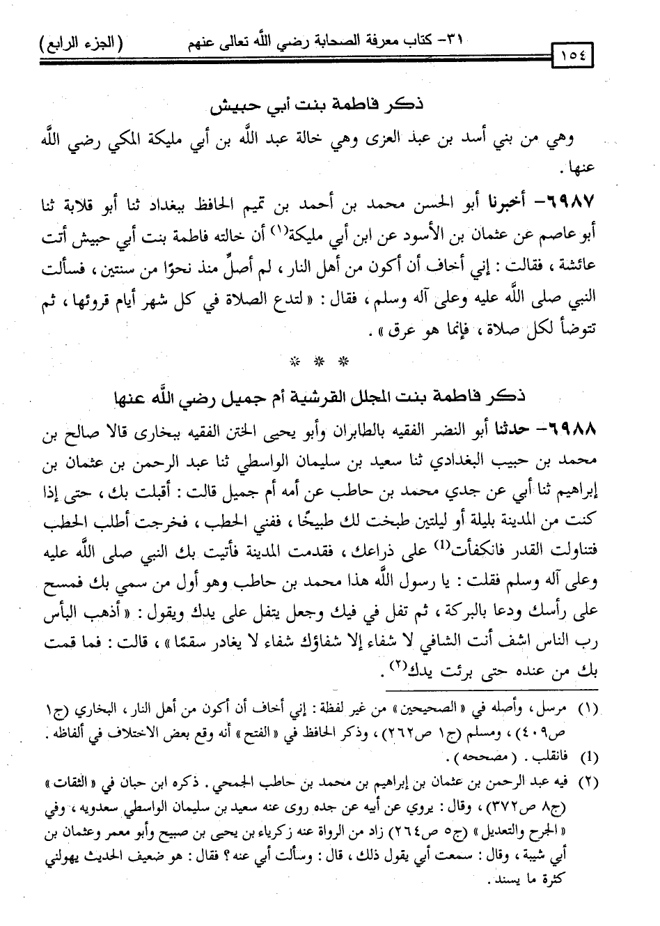 ذِكْرُ فَاطِمَةَ بِنْتِ أَبِي حُبَيْشٍ
