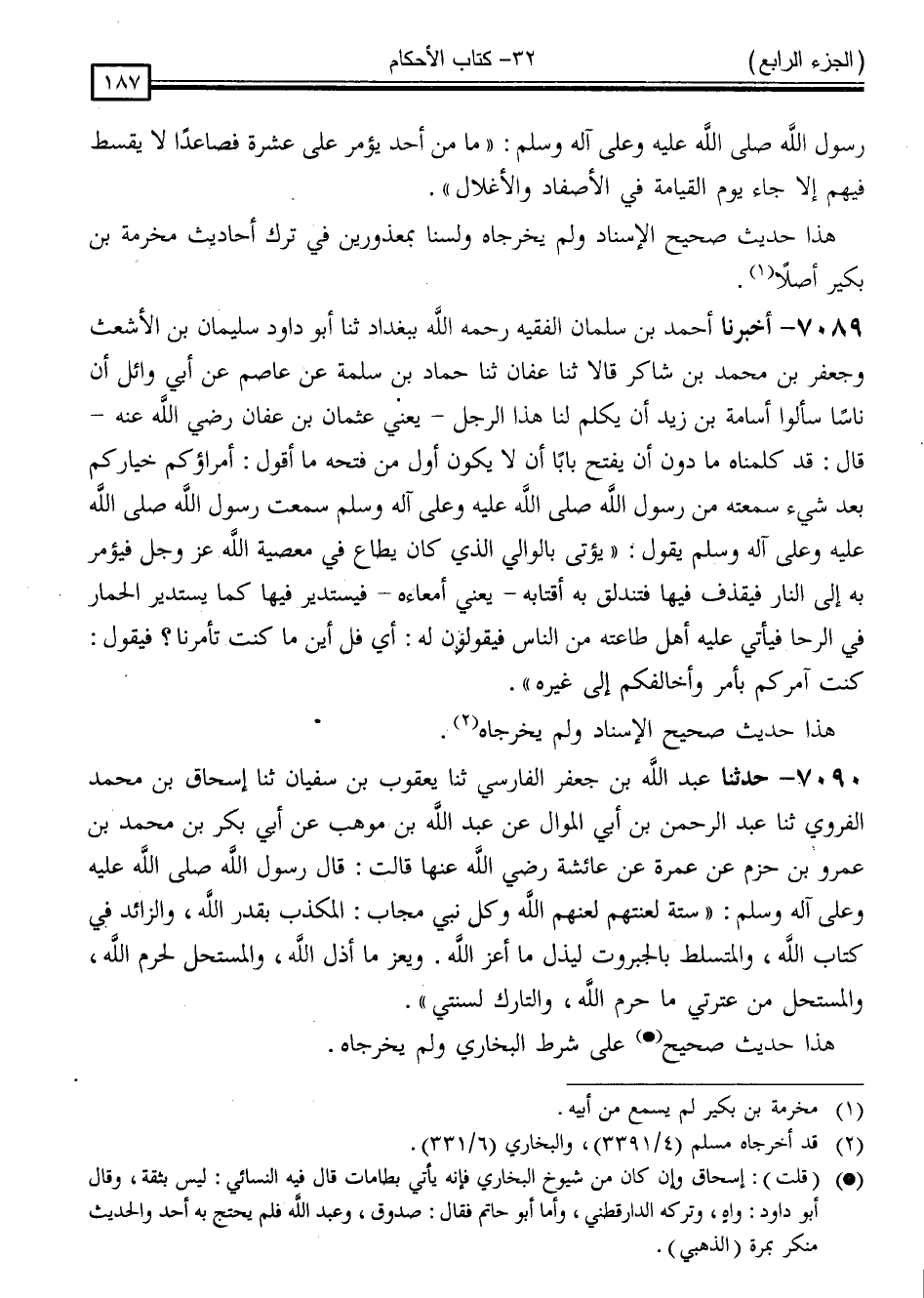 كتاب المستدرك على الصحيحين للحاكم (ت مقبل) (اسم الجزء: 4)