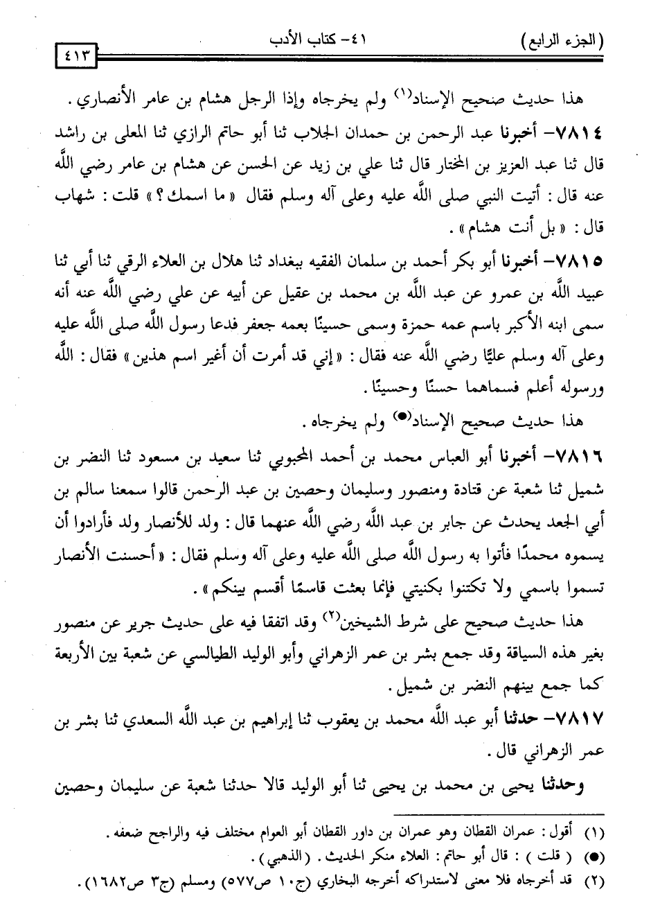 كتاب المستدرك على الصحيحين للحاكم (ت مقبل) (اسم الجزء: 4)